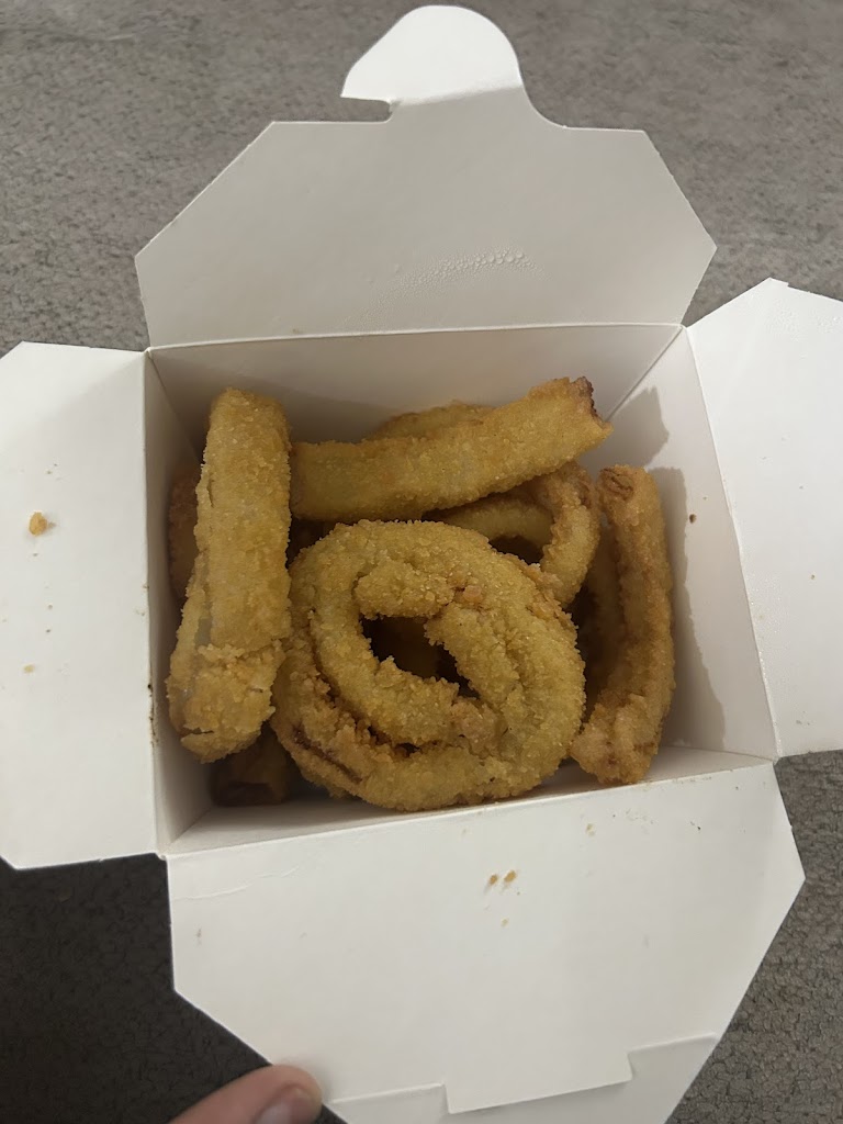 The patty is a little hard and dry, but it's good. Fries are better than other fast food restaurants. Onion rings are good. Foods are hot and fresh. Friendly servers. It just sucks that it is next to a smoke shop; I smell weed when outside before going into the restaurant, which made me somewhat lose my appetite.
