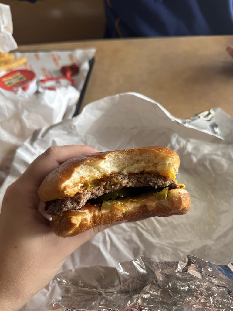 Best burger I have had in my entire life and that's a long time here! Coming from Chicago I expected it would be ok and everyone was just bragging because they had no explored a chi town burger 🍔. But let me tell you this was the most delicious burger and fries 🍟 ever! The price is very reasonable and affordable. The place was very busy which is a good thing so finding a table might be difficult during peak times. Parking is ok it's a big lot but you may have to park a row or two away. Very clean, bathroom which is a good gauge of a place's cleanliness was top notch. Tables and chairs clean and no.kver filling in the garage can. I ordered the number 5 and while it doesn't come with the trimmings, lettuce , tomato etc, it doesn't need it! Just added some ketchup, mustard and mayo and it was stacked! Buns are fire, soft and similar to brioche, almost like they melted butter on it. The fries are thick and fresh, I think maybe they use Lard, which is bad for ya but once in a while it's dope 🔥. Use cash for paying, otherwise it's almost a 4% fee, which was the only negative thing here. I hate when places pass the cost down. It's best to just increase your prices overall 3-5% and not have this sign on your register. Whenever I'm up in this area again I'll be here!