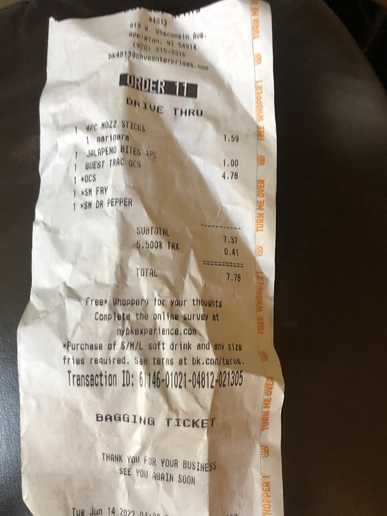 Fresh food best burger King in Appleton WI