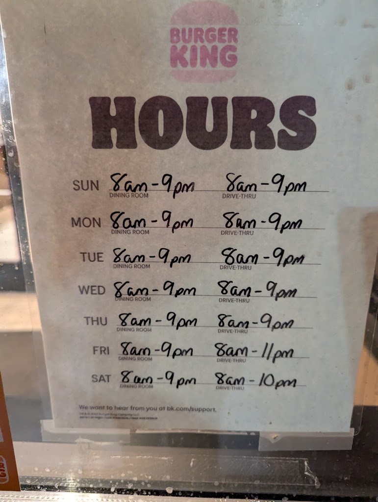 For being the only fast-food joint for miles in the area, they do an alright job. Most people only review to complain, so I hope this helps provide an honest review. Bathrooms were clean, a lady was wiping down tables in the dining room, but there wasn’t any music playing. The self-serve soda machine was out of a few soda options, there weren’t any M soda lids, and the ketchup/napkin counter was quite a mess. I take it this might’ve been from a busy lunch rush—as a former food-service worker myself l get it, but definitely could’ve used attention. Service at the counter was okay, again, rush after a holiday weekend isn’t fun for anyone. In the end, our order was correct, the food was hot, and we had a clean place to sit and eat before we hit the road again. Thanks BK Bonduel!