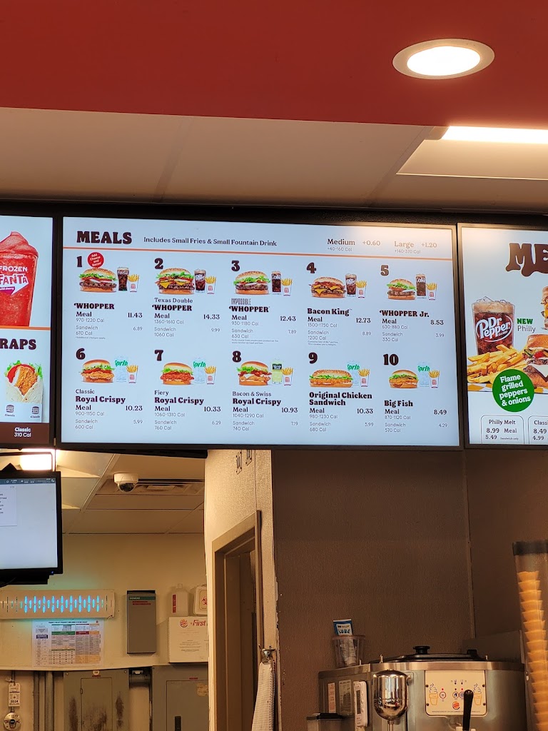 $10 for a whopper jr. Meal. Fast food just isn't worth it. And it came on a stale bun with no tomato. When I asked for a slice of tomato, they just shrugged and said they are out.