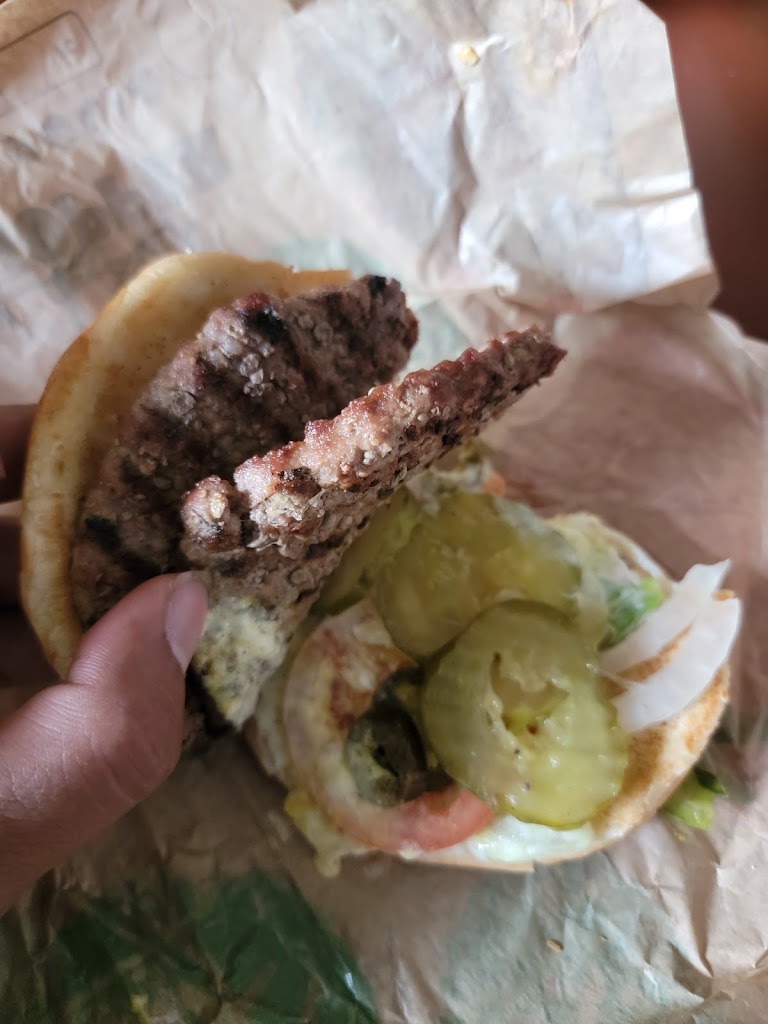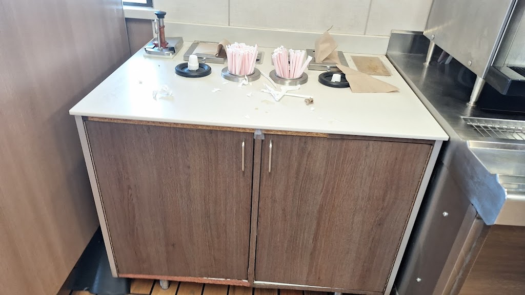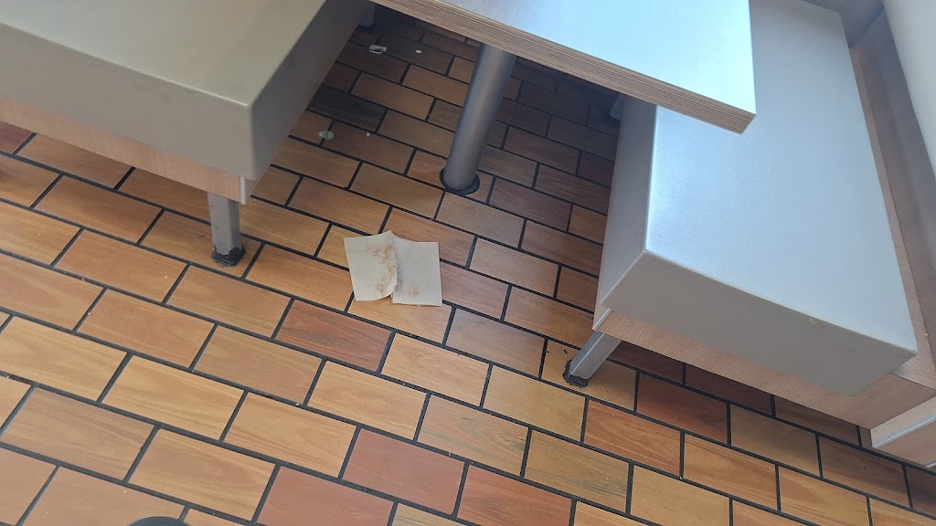3pm Saturday. Garbage on all the tables despite only having people sitting at two of them, garbage on the floors. Bathroom floor was sticky, piss on the toilet seat. I've worked a lot of fast food jobs before, if my boss saw the place looking like that they'd have fired the whole shift. One employee was leaving when we got there, no one thought to ask him to take five minutes and make it look like a health inspector would give em a C grade at least before he left? Don't have to mop the damn floor but maybe take the trays with wrappers off the tables? Y'all need to hire someone who has some standards.