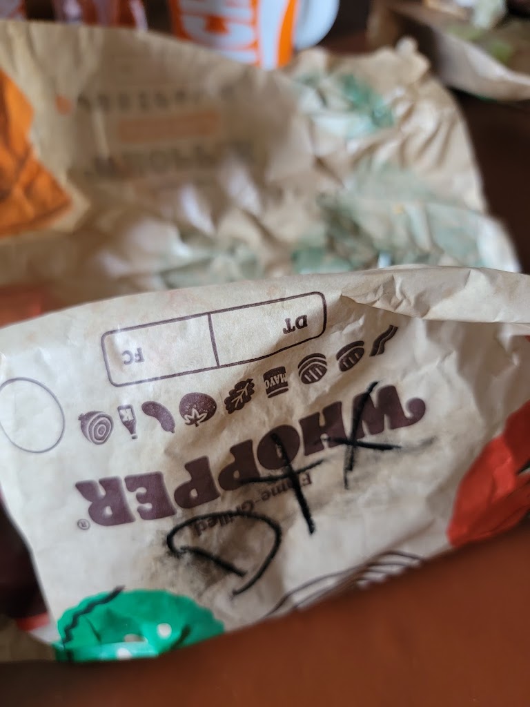 It's Burger King - you know what you are going to get. Our whoppers were good and correct (special orders). Fries were good and hot. Best thing - we could go in and eat. First went to Hardee's, A & W, and McDonald's - none of which had their dining rooms open! Short staffed. ☹