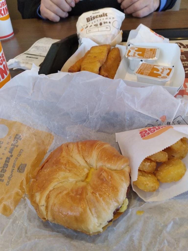 The kid taking my order in drive thru was confused on the loaded croissan-wich. Then I watched him drbble and empty 2 cffee pots in my cup. I handed it back, stating it was barely warm. He asked me to drive around front, he will bring my order out after new coffee is done. I waited 10 min and finally went in to get my order. The drive thru line picked up during this and he seemed overwhelmed. 1 guy cooking, 1 guy, I'm assuming a manager. 1 customer inside, at a table. Manager needs to kick in and help out if they're so understaffed. I always liked their food, but stated I wouldn't return.