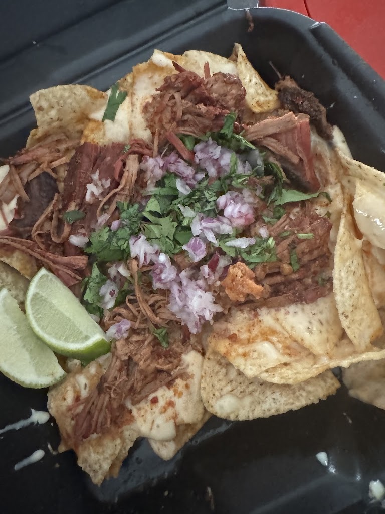 Great, chill atmosphere with a fairly younger crowd, at least when we visited. The servers were friendly and the food was absolutely amazing. We ordered the birria nachos, a brisket sandwich, and the ribs. Everything was superb-tasting, and we will certainly be back.