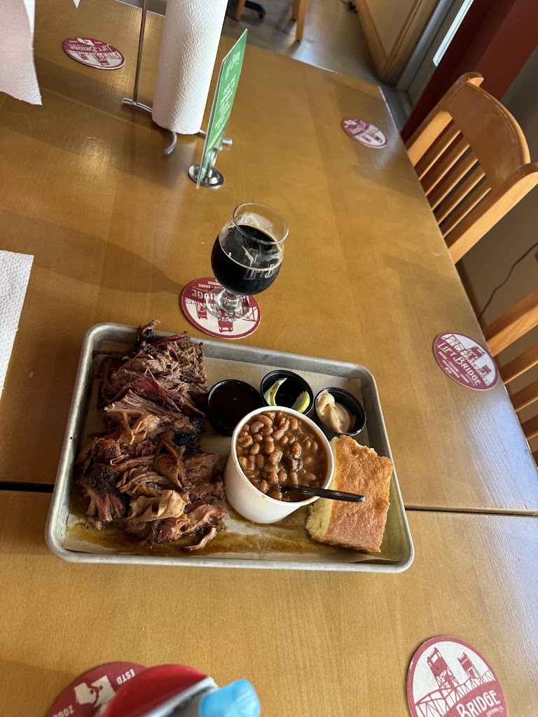 This place is amazing! My family and I eat here about once a week and are never disappointed. The kiddos love the Mac and cheese and my personal favorite is the Papa’s Brisket sandwich 🤤 Staff and atmosphere are amazing as well. We love having such a good BBQ place close by. There’s no better combo than BBQ and Lift Bridge beer!