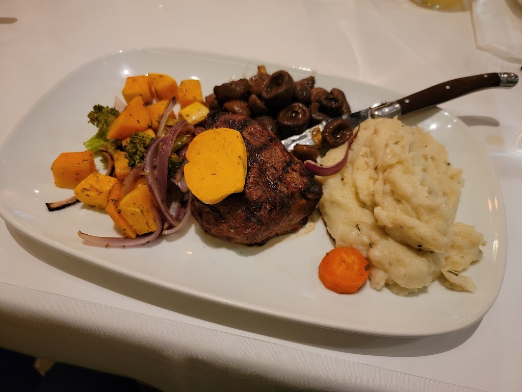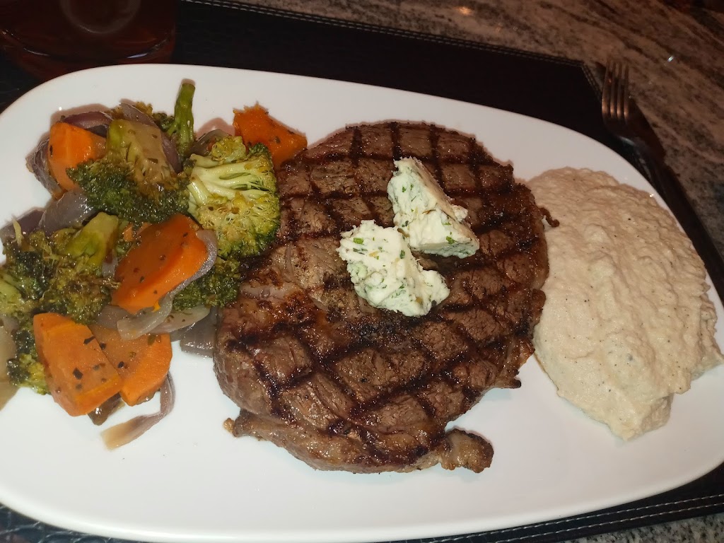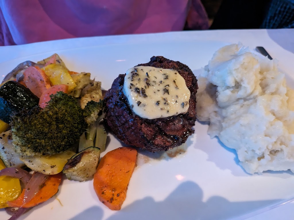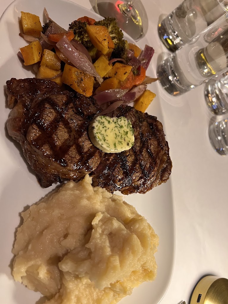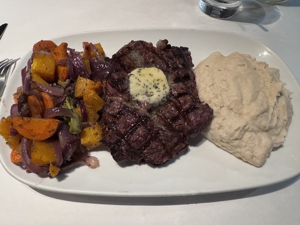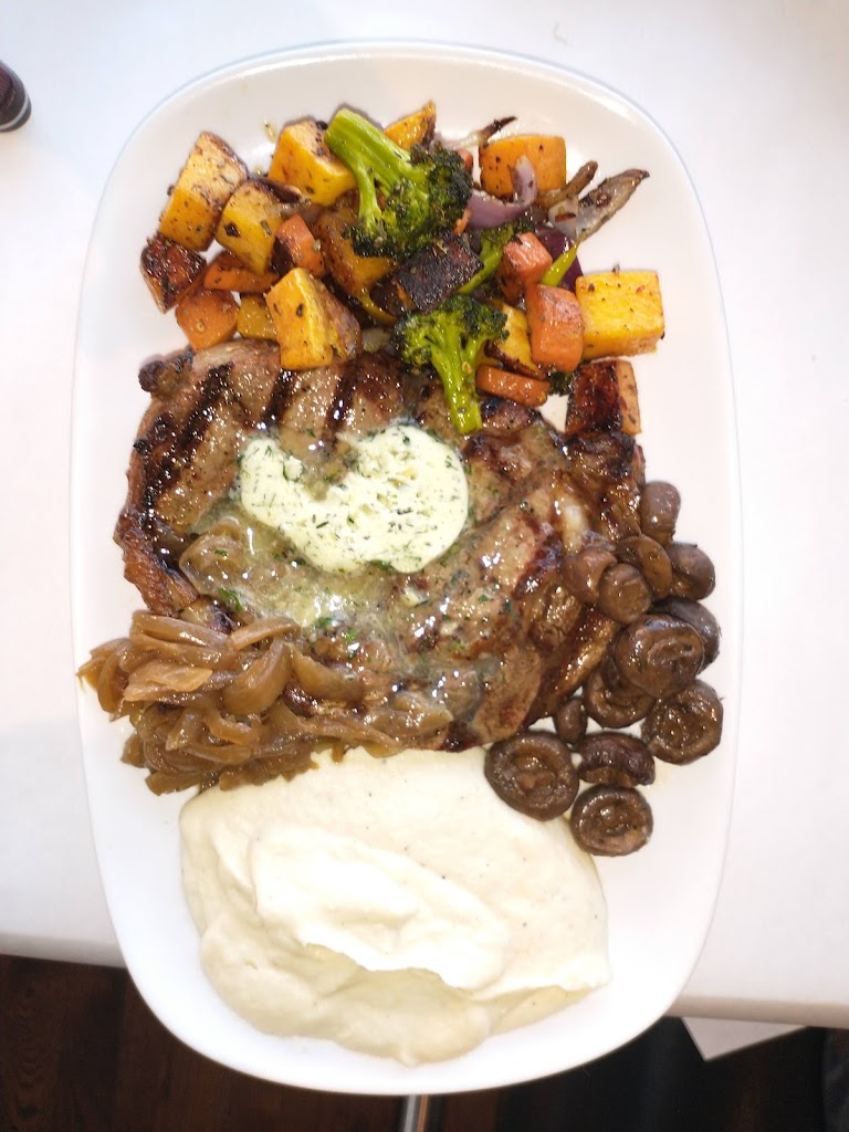 On to the main meal - we both ordered the urban cowboy (ribeye steak) that came with cauliflower mash and a vegetable medley. The steaks were seasoned so beautifully and cooked exactly how we asked (medium rare). The mash and medley were both seasoned to have such delightful and unique flavors.