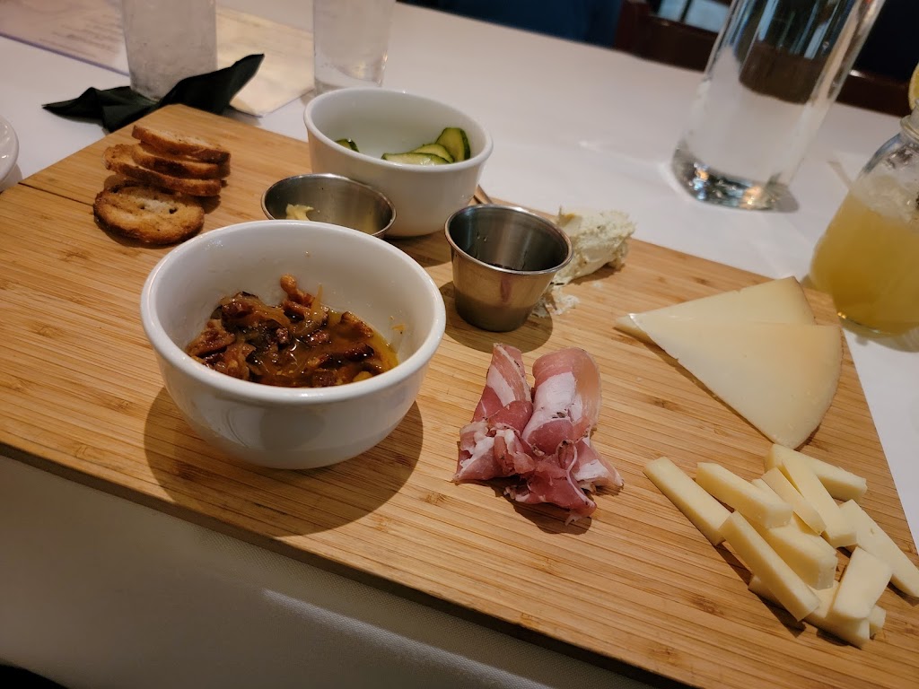 We were promptly and attentively taken care of by Matthew - he anticipated every need and ensured everything came out to perfection. We started with the butcher block appetizer which had several delicious meats and cheeses accompanied by dried apricots, olives, biscuits, honey, and mustard. We had a good time trying different flavor combinations!