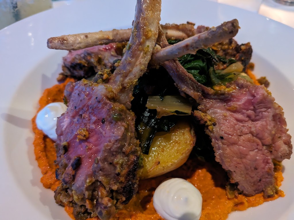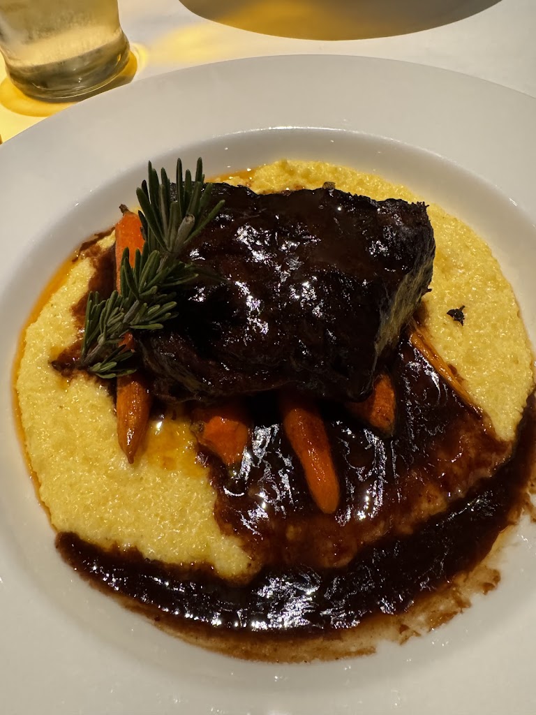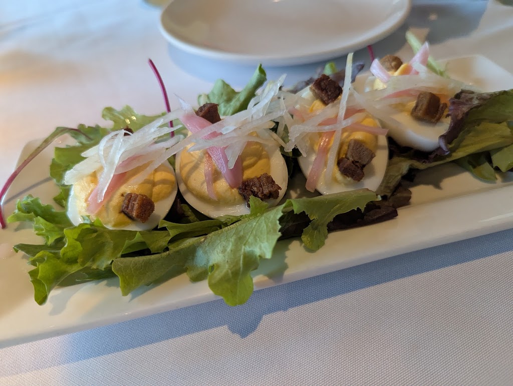We ordered the deviled eggs with the crispy pork belly, and excellent touch. Followed up our appetizers with the Short Rib on polenta and the Urban Cowboy. The steak was perfectly rare and the sides were perfectly seasoned.