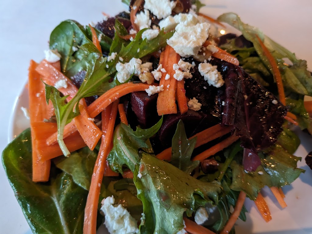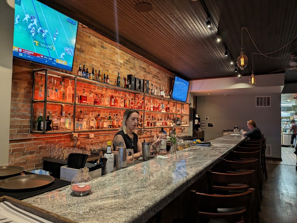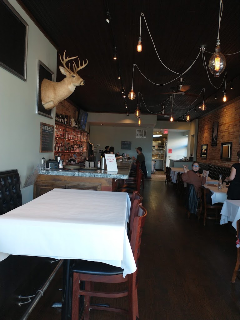 Great little place. Had dinner solo at the bar. Smothered pork chop with rutabaga mash subbed for mashed potatoes. Really first rate. Nice selection of wines by the glass. Server and bartender pleasant and efficient.