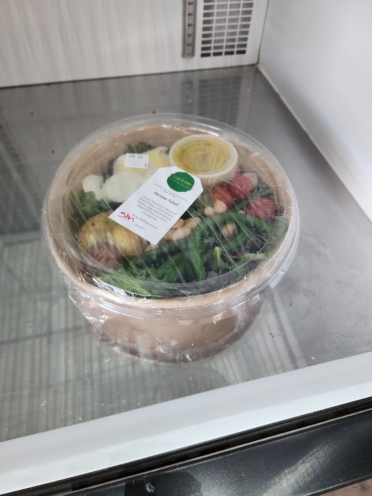 Healthy food choices: pre-made or ordered. Coffee & bakery items too. Juices, smoothies.