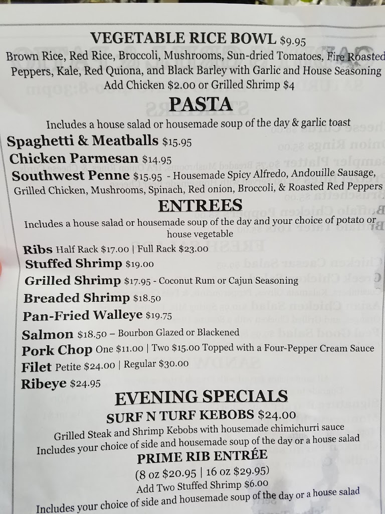 Cabby's Grill and Patio is a family owned restaurant. We offer indoor dining, outdoor patio dining, and carry out orders. Our menu consists of Starters, Fresh Salads, Housemade Soup, Sandwiches, Pasta, Entrees, and more. We take pride in using fresh ingredients and serving housemade menu items. We offer a Pizza Menu alongside our Full Menu on Tuesday, Wednesday, and Thursday Evening only. We serve an excellent Friday Night Fish Fry as well as Saturday Night Prime Rib. Come relax at our bar and enjoy muddled old fashioned, craft beers, monthly specialty cocktails, a variety of Moscow mules, and a nice wine selection.