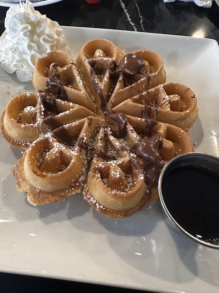 We stopped in here for breakfast and it was amazing!! My daughter ordered the Polar Bear Waffle and a hot chocolate and the added whipped cream and sprinkles to the cocoa. She was so excited. I had the Southbound Waffles. It was very good as well. The waitress was wonderful kind and polite. We are very pleased and highly recommend it. 😀