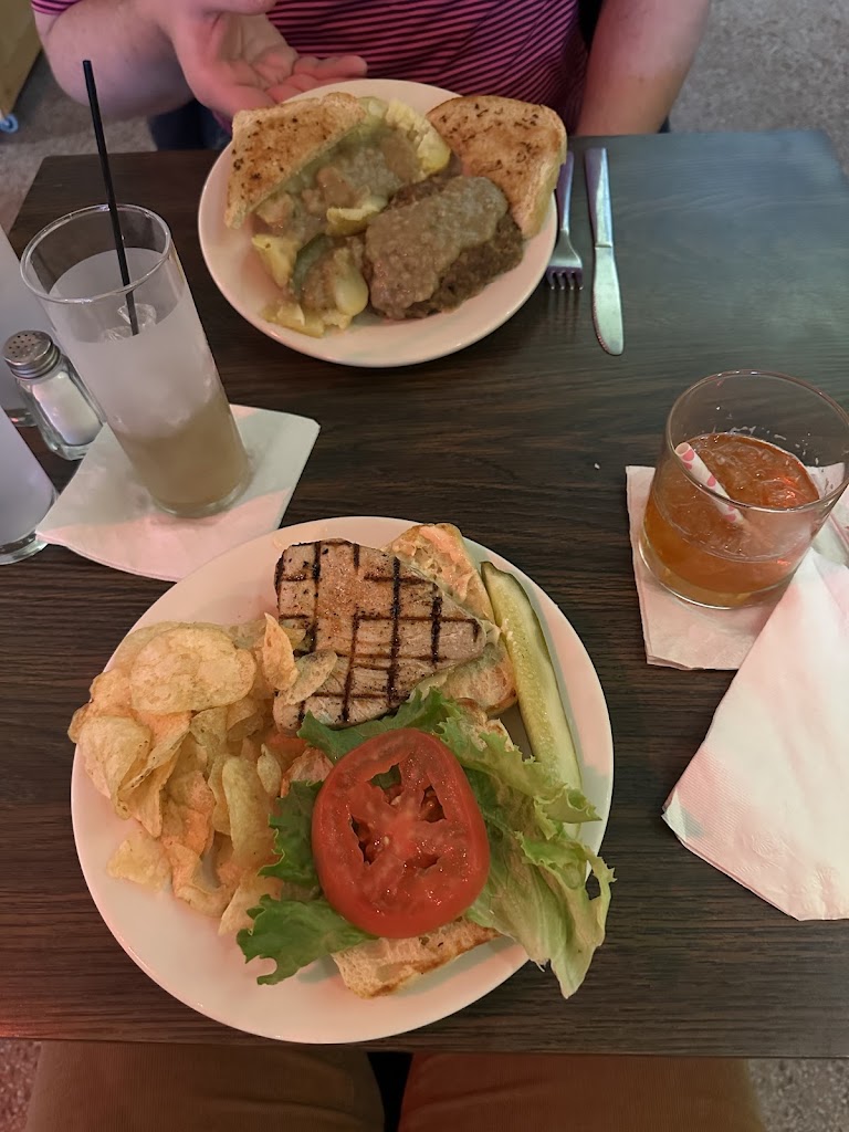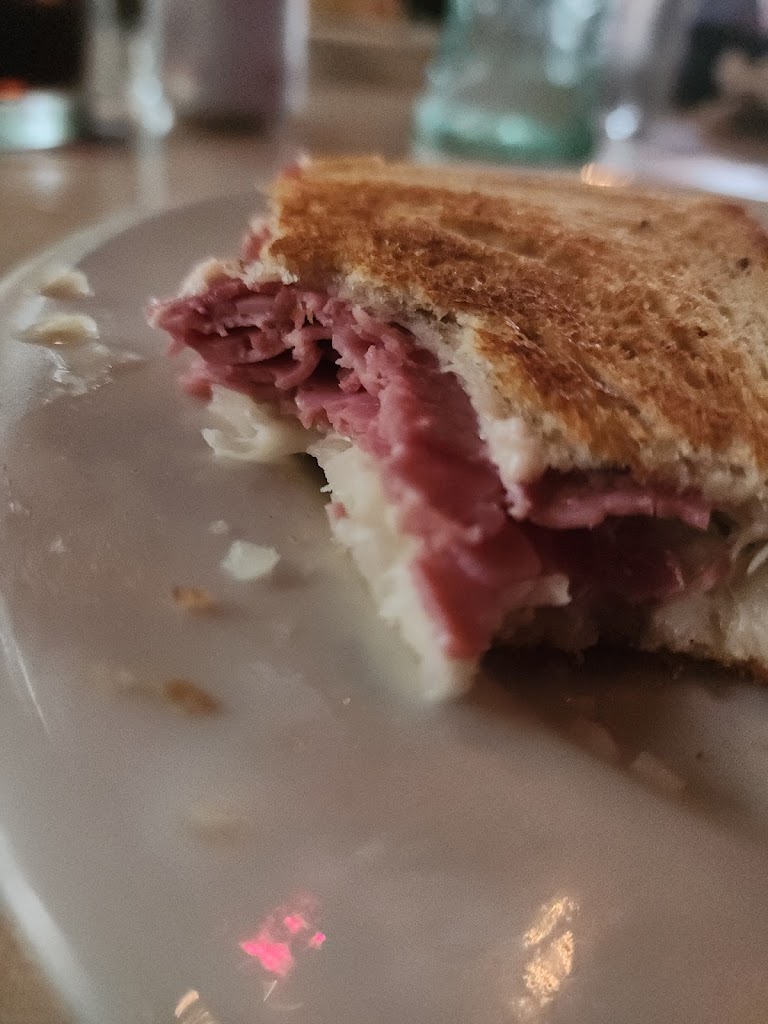 Pleasant cafe with good food and entertainment. I had an excellent grilled ham and cheese sandwich with just the right balance of ham and cheese, grilled to perfection and not greasy. Then went to the room with live music. Quality food and entertainment at a reasonable price.