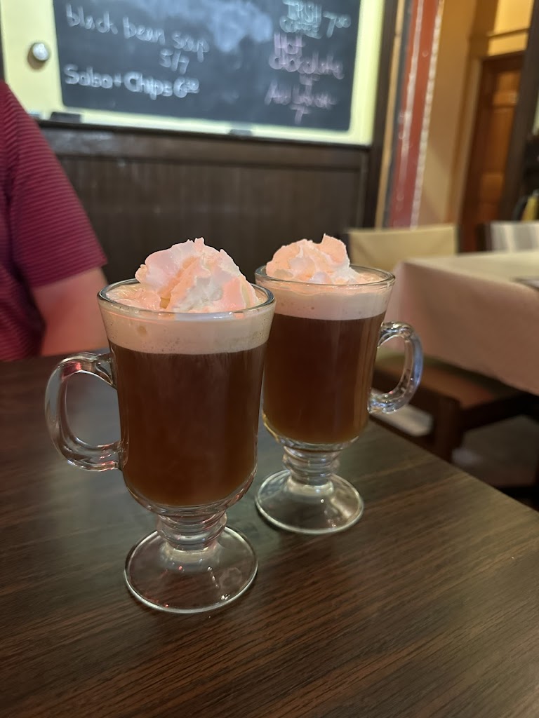 Delicious food and drinks! Got Cajun Tuna and Cajun Meatloaf for dinner, as well as Black beans soup. Everything was absolutely delicious, so we decided to stay for Irish coffee with some desserts! They were delicious, definitely recommend the turtle bars and carrot cake.