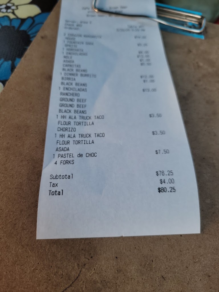 What an amazing experience! The wait staff was so kind and courteous. Our waiter Mike was top-notch. The salmon burrito was the best I’ve ever had and my kids said their asada tacos were delicious.