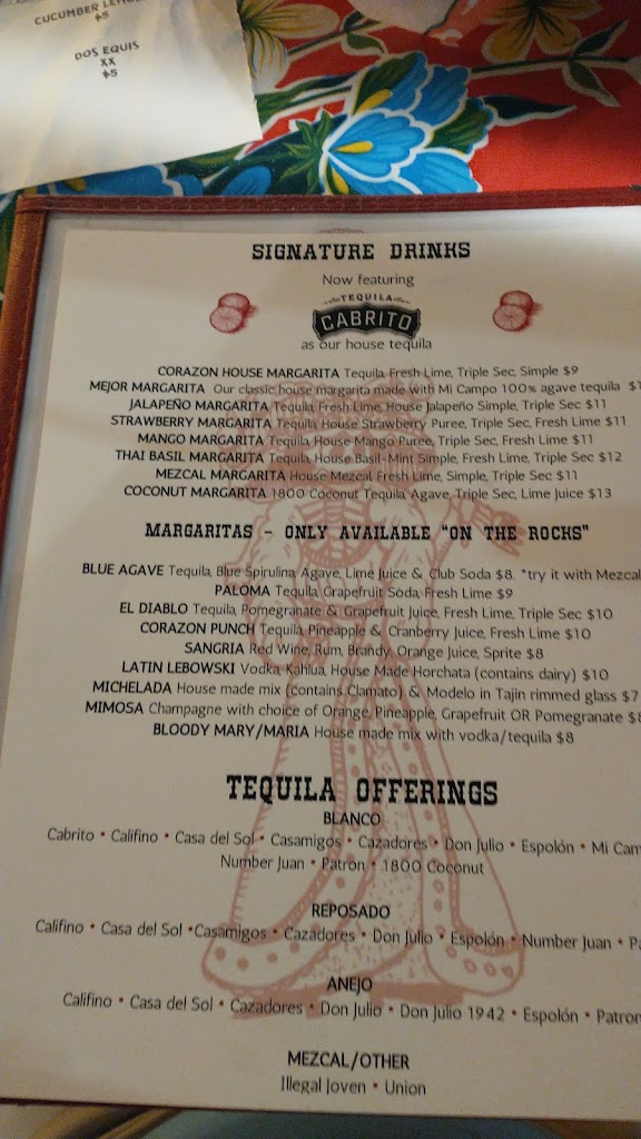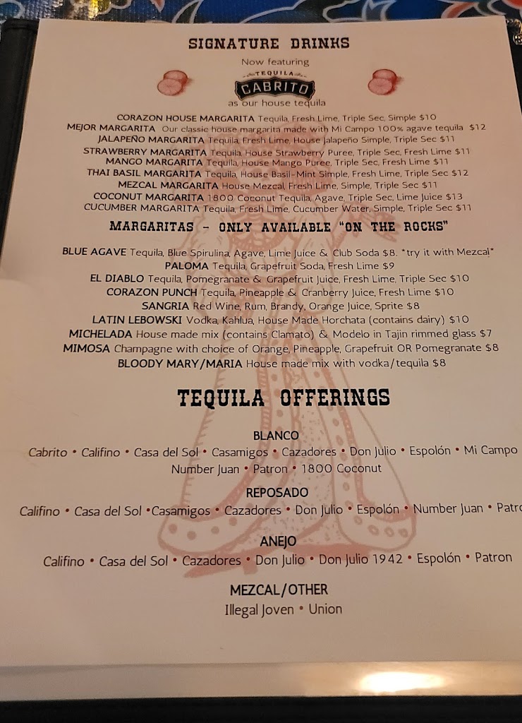 You see - I feel like Corazon is the neighborhood restaurant - where you know the staff, they know you - and that there is a special kind of camaraderie. I've met many people sitting at the bar, and patio - who have become friends - or acquaintances. The same with the staff - many cool conversations with the college kids, and staff as time has gone on. We always bring people visiting for a meal here. Is it the most authentic, no. But it's always ON point.