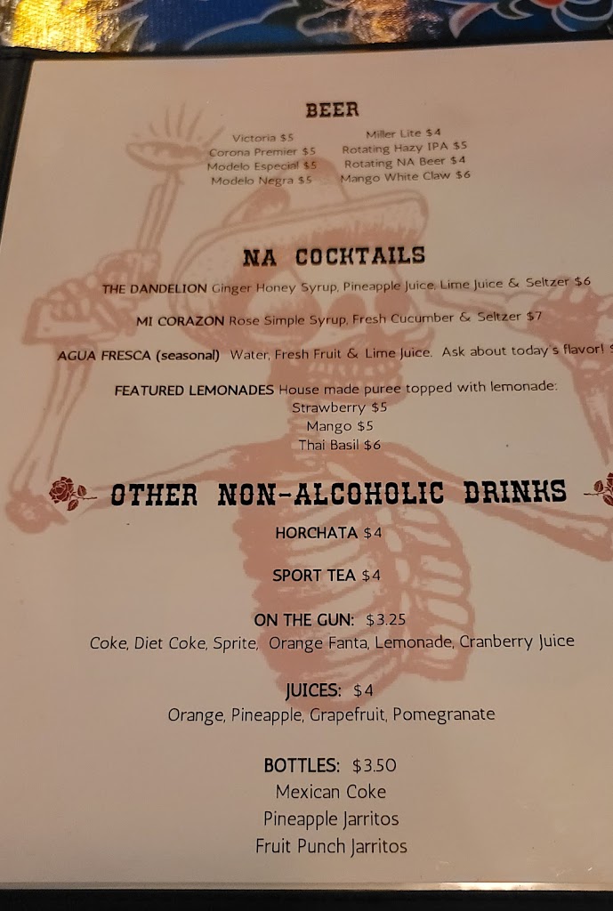 Interesting place and decor. They have pictures of Jesus Christ but also pictures of the devil (Diablo). I ordered a steak and shrimp fajita and received 3 pieces of steak and 4 shrimps. I’m hurt…..