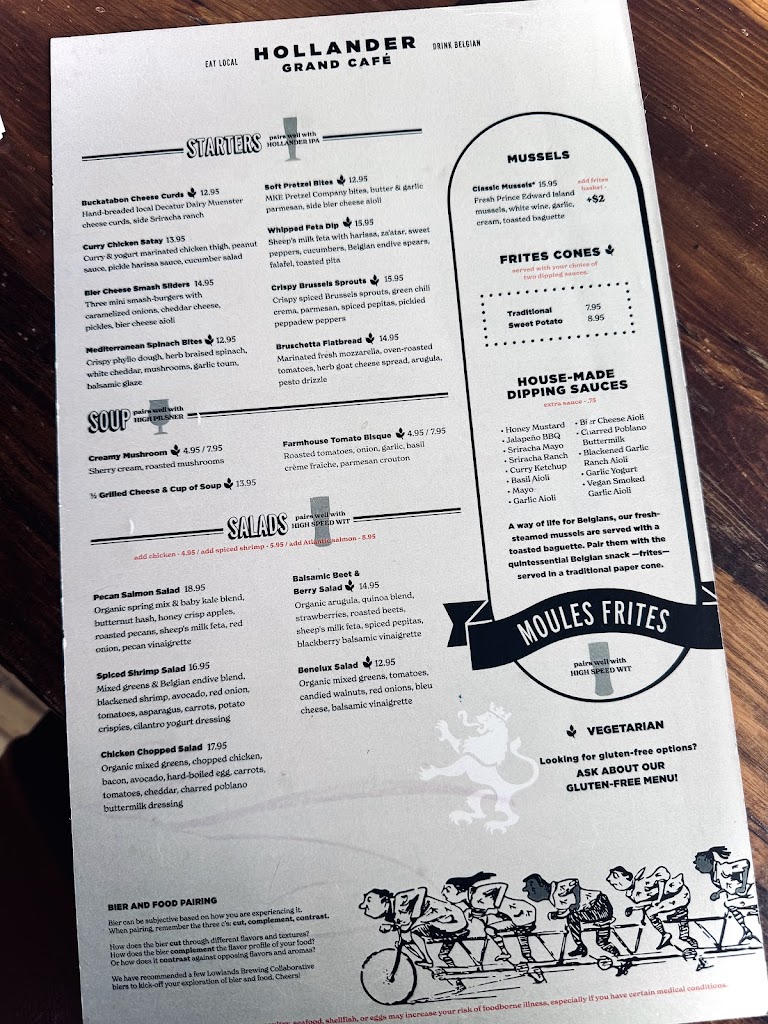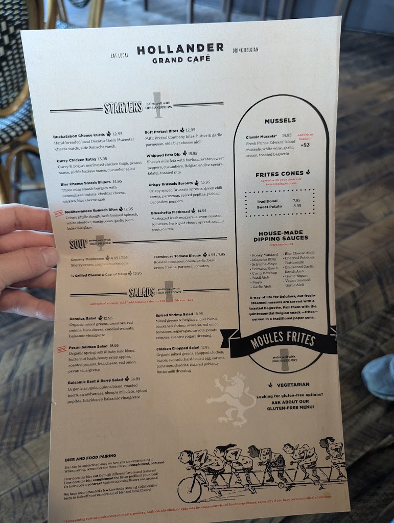 Café Hollander on Downer is hands down one of my favorite spots in Milwaukee! 🧡 The atmosphere is so cozy and welcoming, whether you're stopping by for brunch, lunch, or just a drink with friends. Their menu is always fresh and creative — the frites are a must, and the burgers and sandwiches are always spot-on. Plus, the beer selection is amazing, especially if you're into Belgian brews 🍻