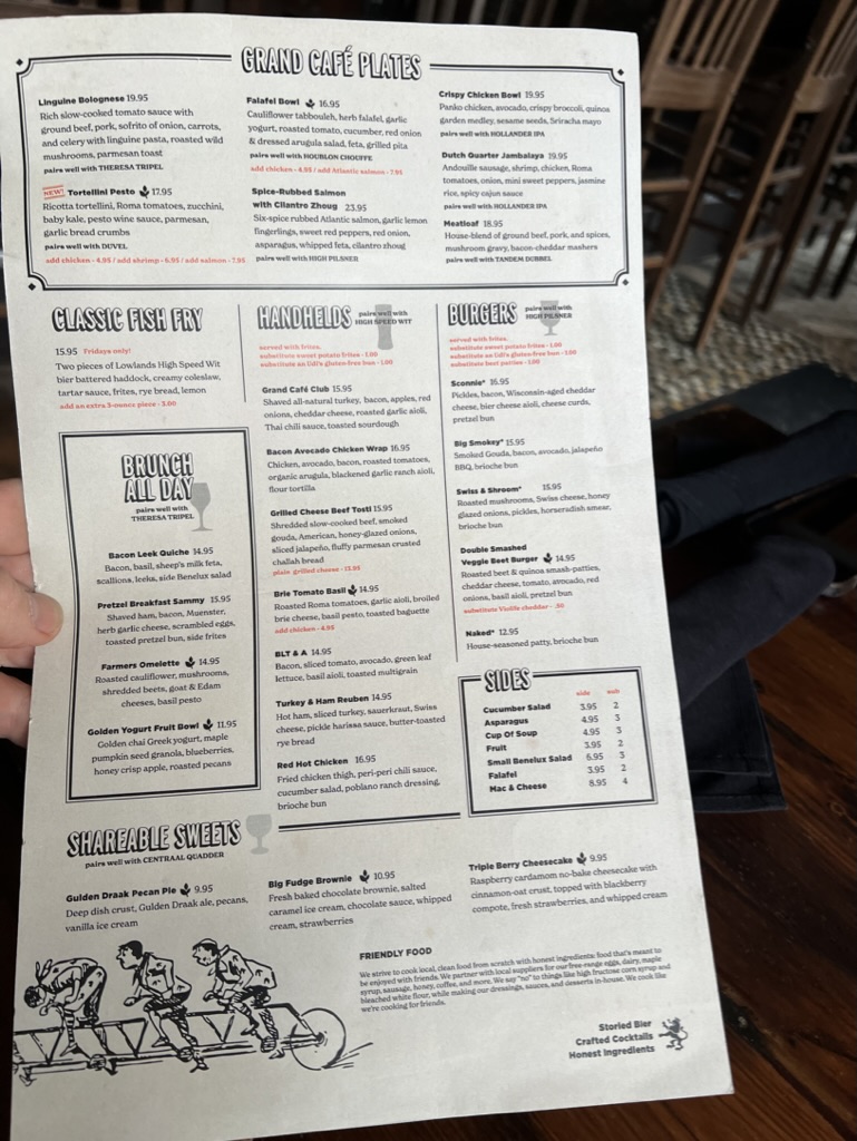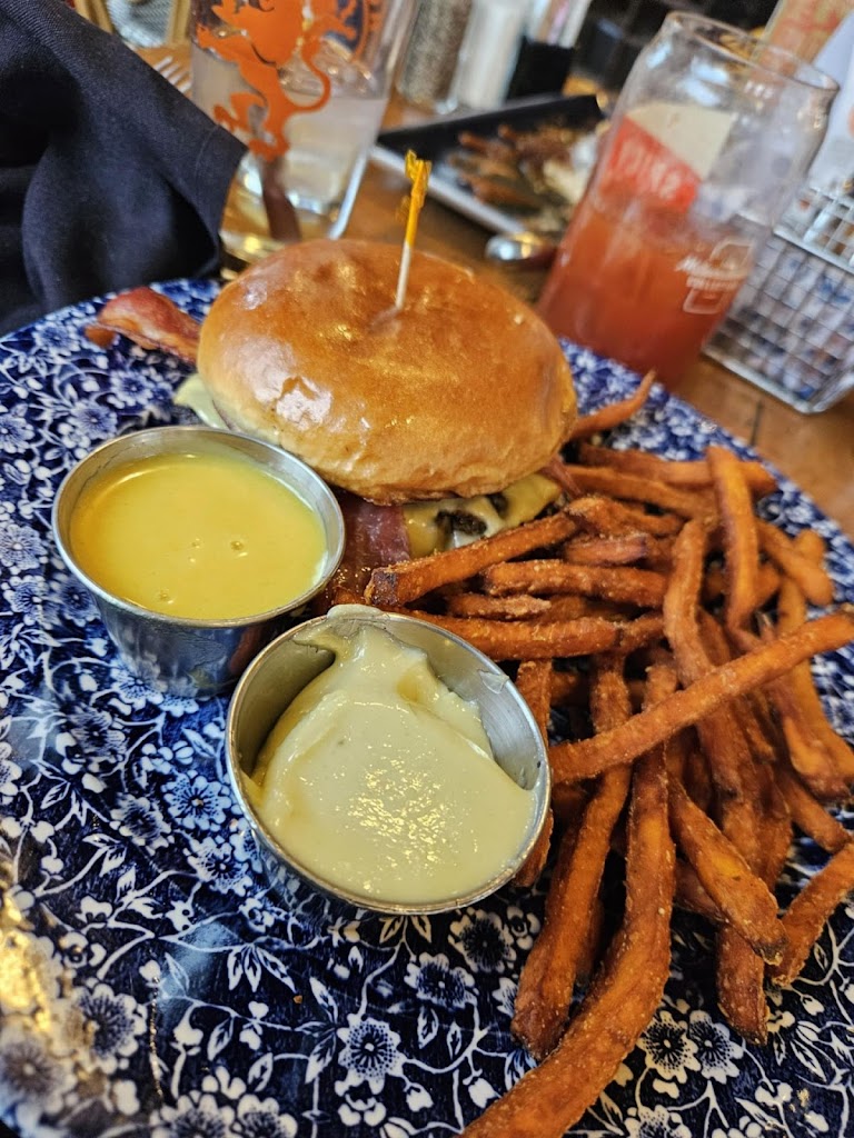 Luxembourg burger and beer pairing was delicious! Complex flavors, neat presentation. Could have had more fries. Ava was an amazing server- super attentive and knowledgeable. Great location, we sat on the patio and my partner and I thought it was delightful.