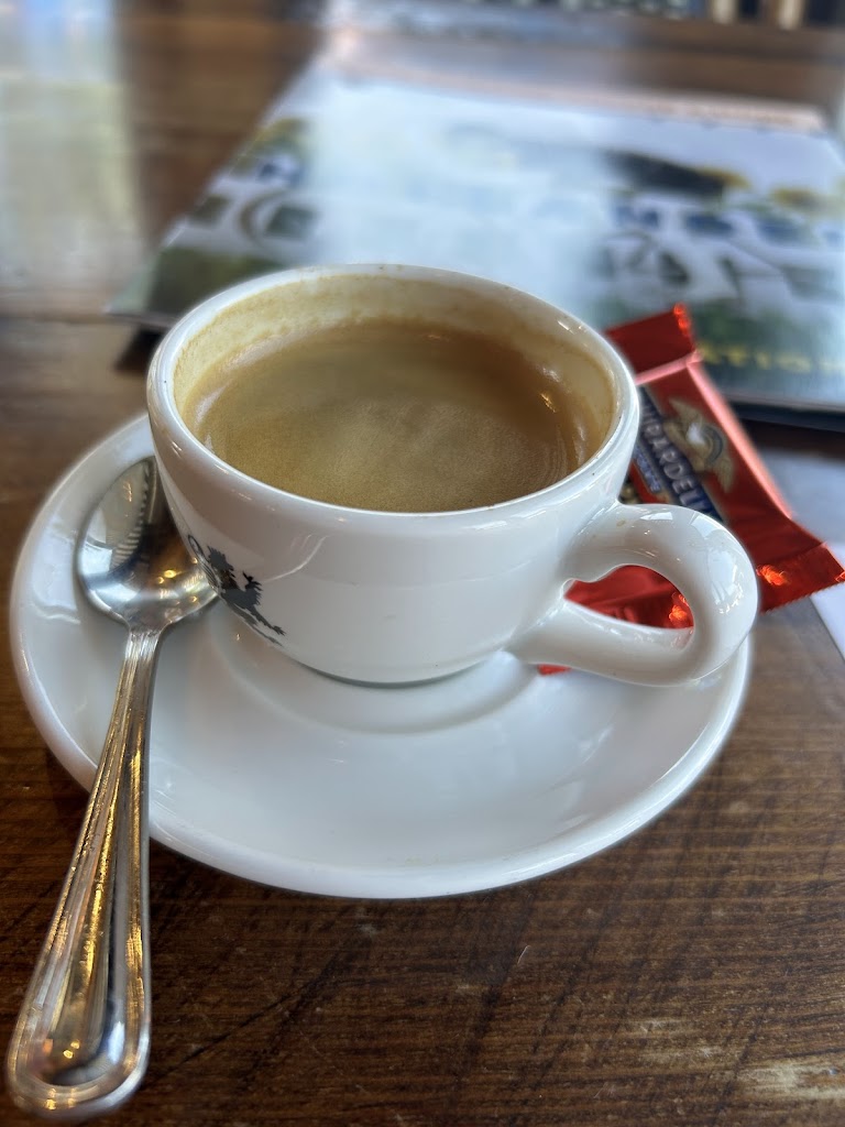 We stopped here for a light breakfast and ended up staying for over one hour. The outside sitting by the fountain is so pleasant and smoothing. The waiter was personable and charming. This is such a great place!