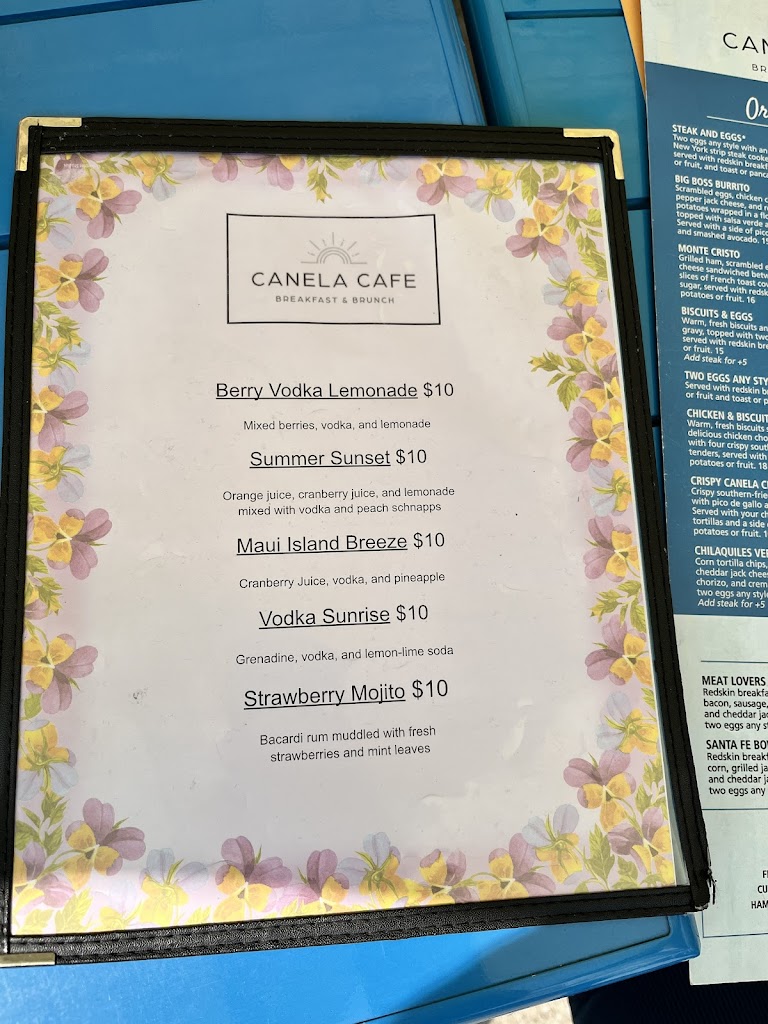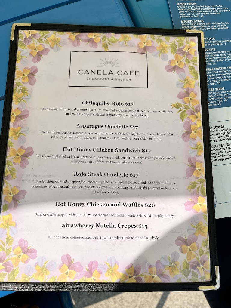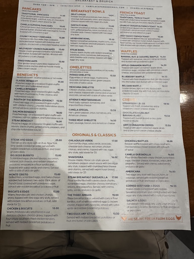 Just ate at The Canela Cafe and it was a wonderful experience all around. The pancakes were to absolutely die for and the rest of our food was also delicious! Our waitress Jodi was exceptional and a great time was had by all. We shall be back!!!