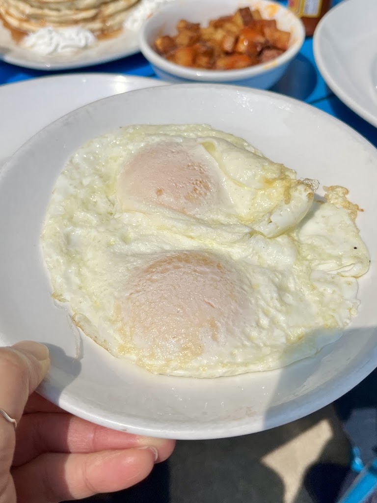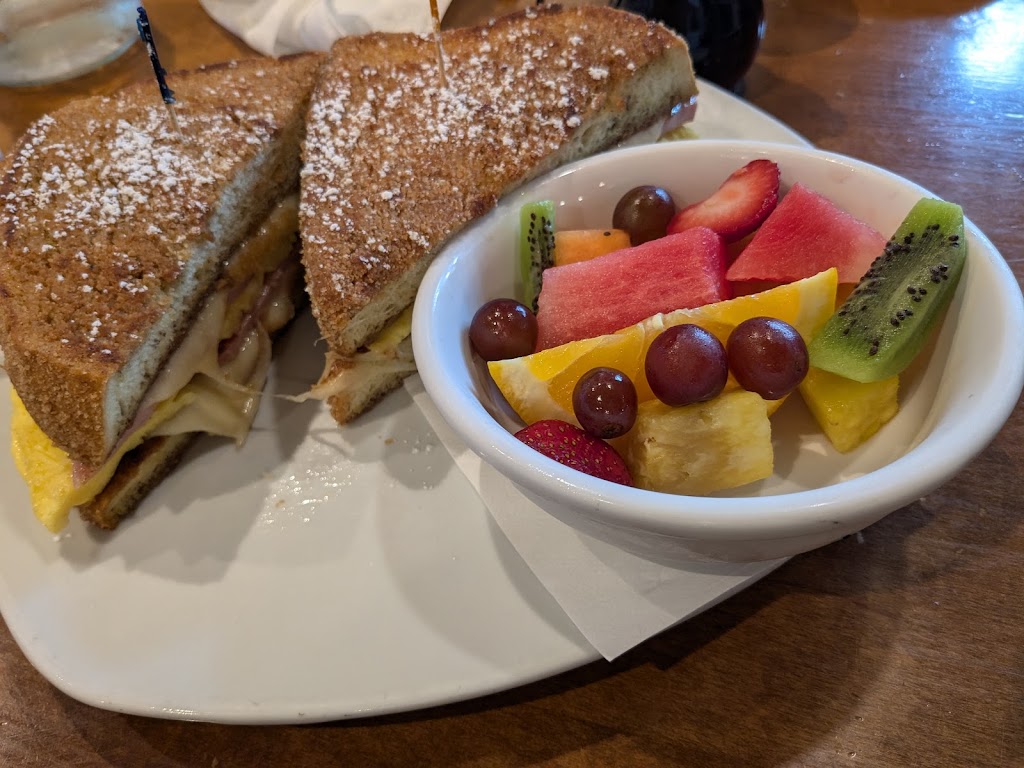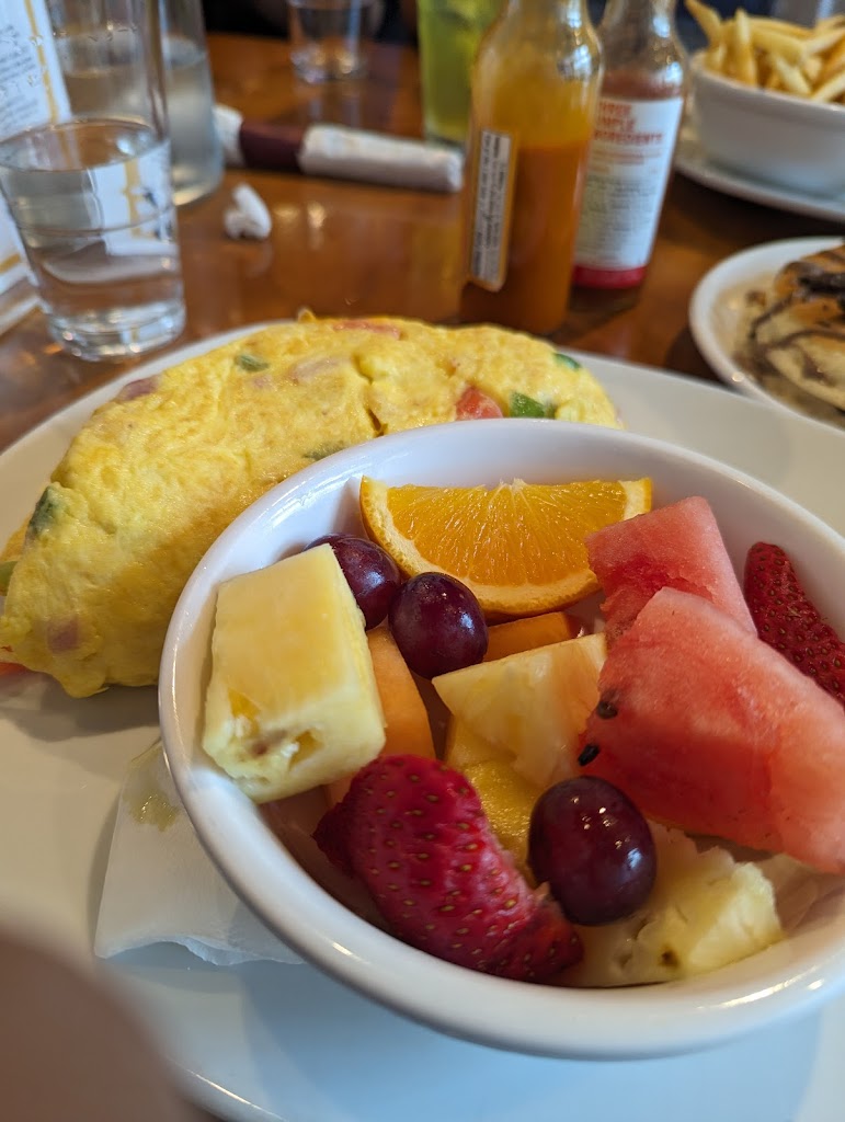 Asked if I wanted more fruit. No, it might be moldy too. But they still charged $13. For 1 egg and 1 very small pancakes. Sorry felt ripped off
