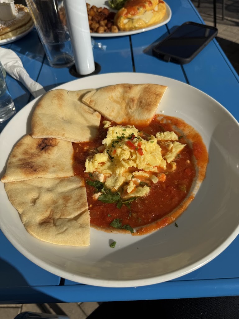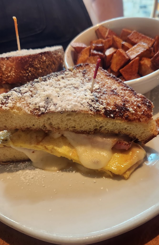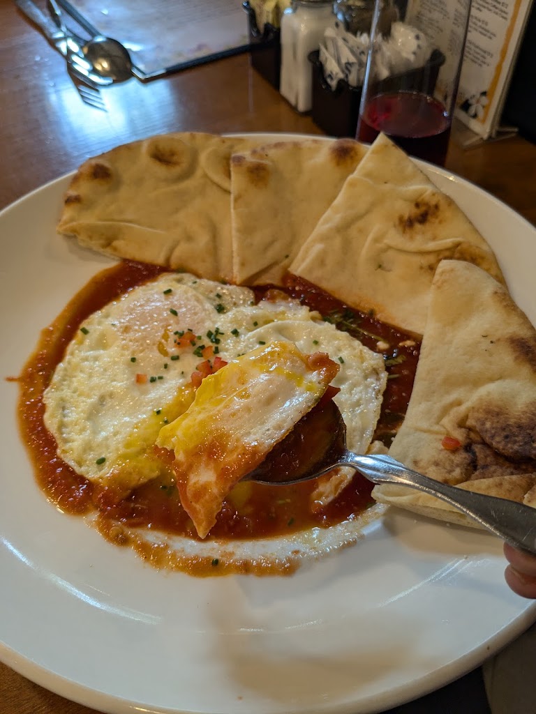 Lovely little brunch spot. They had a good variety on the menu but its not overwhelming which is nice. I recommend the shakshuka- it's a light and hearty option. The monte Cristo sandwich is HUGE, just FYI.