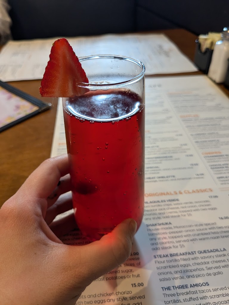 Great food! Different flavored mimosas, good bloody marys and other hangover remedies.