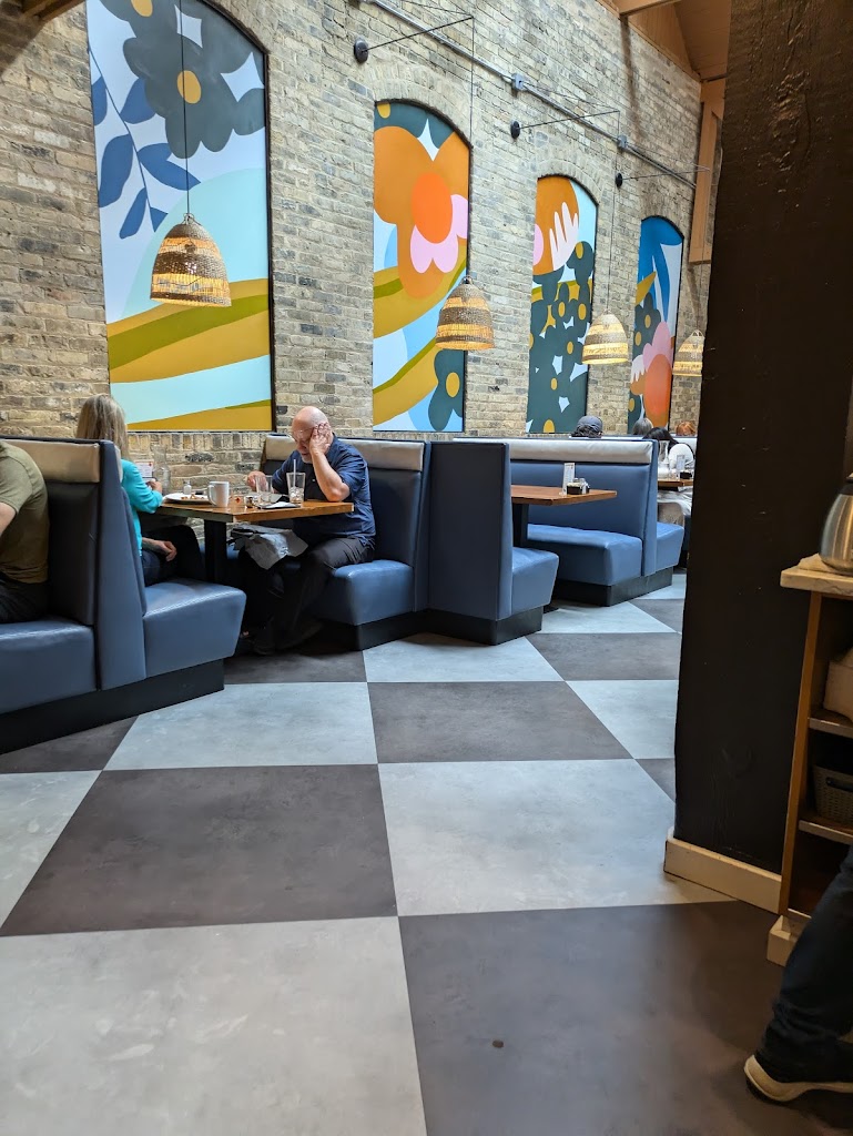 Great brunch place with solid food options. I enjoyed their menu, service was quick, and the atmosphere was enjoyable. You may have to wait a bit when going on the weekend, but there is a lot nearby to walk around and visit while you do wait.