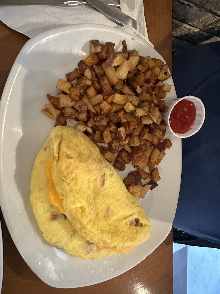 We both ordered the Americana. The potatoes looked extremely old, if I was the server I would not have brought those plates to the table, they looked really bad. I hate having to complain but we told her the potatoes were old and stale, so I asked if I could just get some toast instead. This question made the waitress completely freeze she didn't know that to do. She said she could take my plate and ask the manager but that would mean my husband would have food while I have to wait longer, so I just gave up and asked for a side of toast. Toast is so easy and yet it took forever. When the toast arrived my eggs were cold.