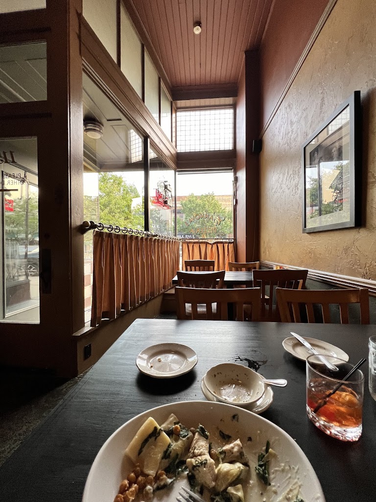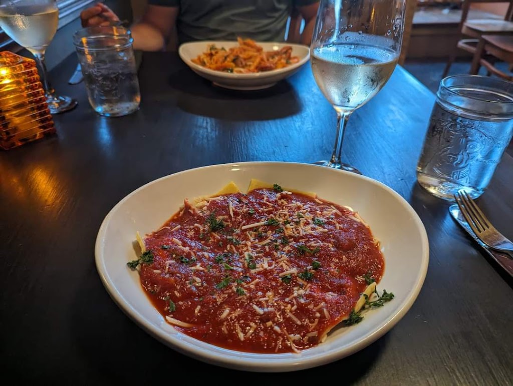My wife and I love the atmosphere here, especially in the summer when you can eat outside. Our favorite dish is the calamari, which may be the best I've ever had. We would eat here more, but the prices are a little high. I think the rent downtown is probably high, so they probably have to charge that, but I'm a pretty good cook and can make comparable quality pasta at home. But the place is packed with people every time we go, so they must know what they're doing. I would rate the service higher, but it can be slow and even a touch pretentious at times. Overall, it's one of the nicest places to eat in the area.