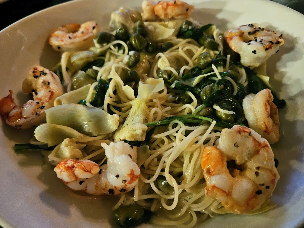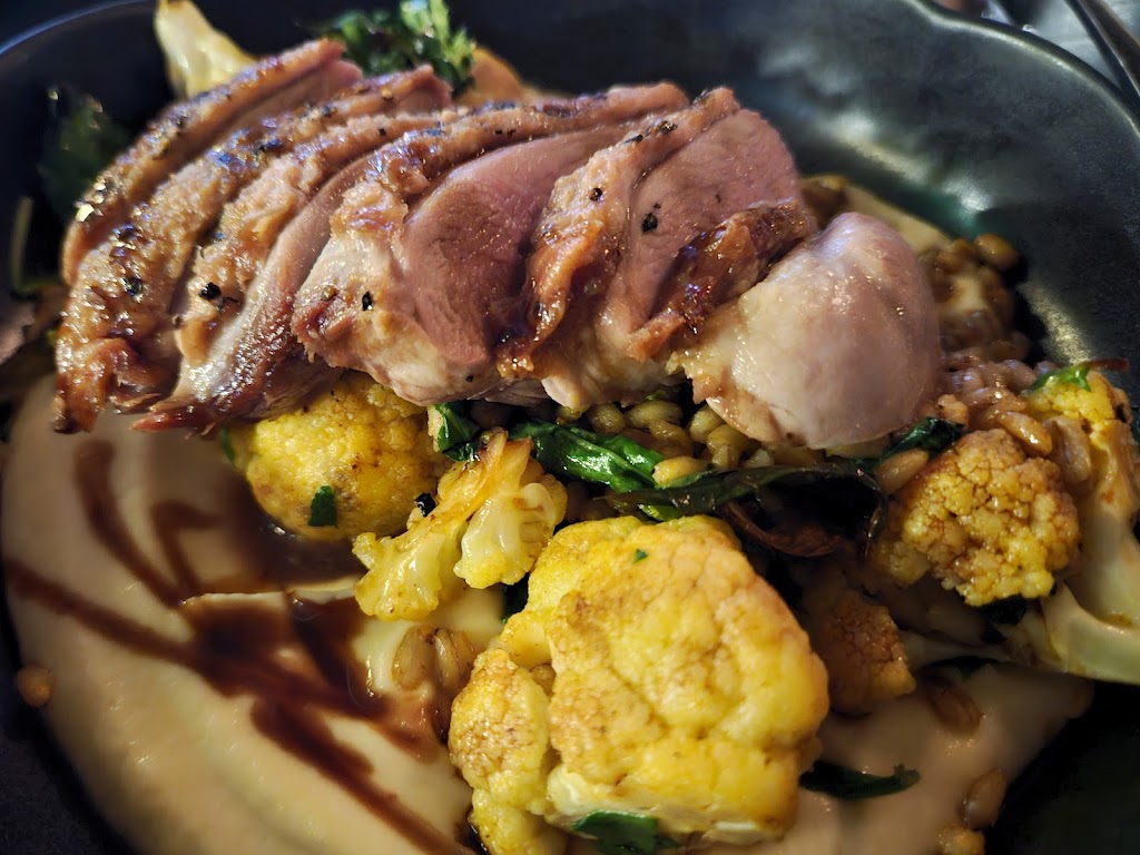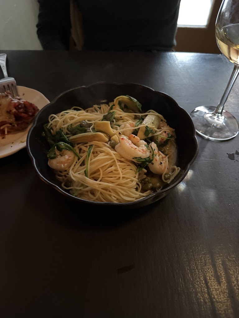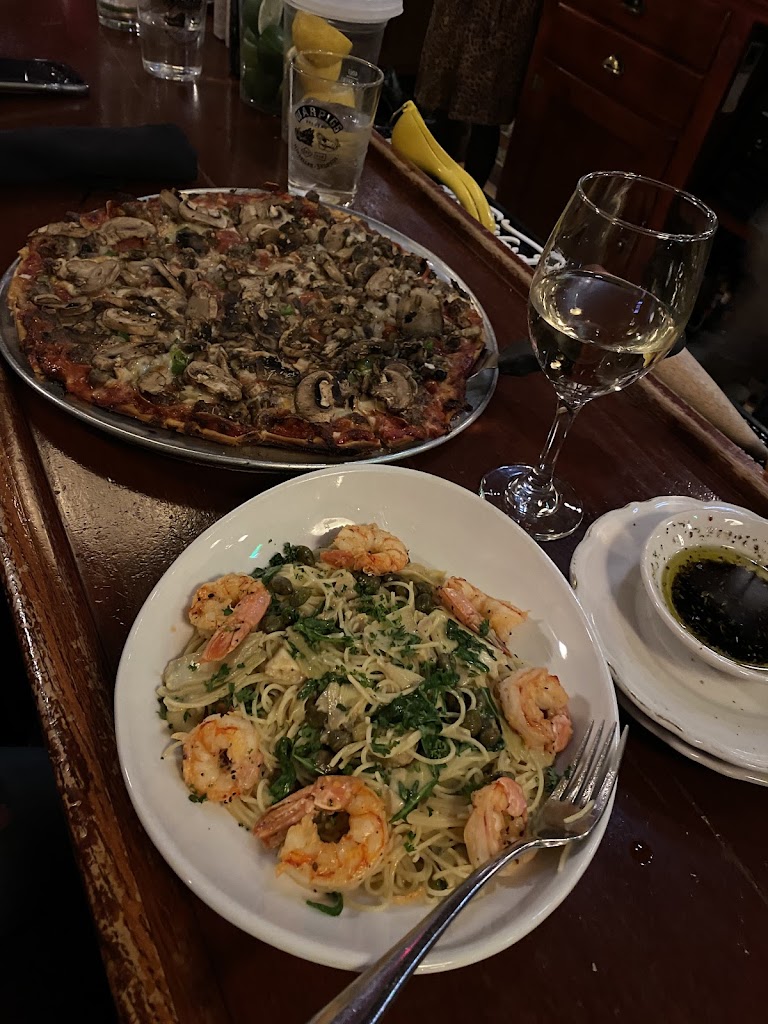The crust was the highlight of our pizza, toppings piled on, but it seemed to lack something... high quality cheese. They had a duck breast special that was cooked very well. We also tried the shrimp piccata (which needed a little more lemon). Overall, it was a good experience.