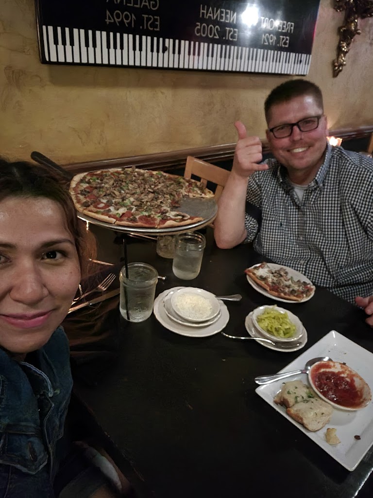 We really enjoyed our meal in Neenah's cute downtown area. We enjoyed the drinks,appetizer-fried artichoke, Caesar salad, chicken alfredo, supreme pizza and Pepperoni pizza. Too full for dessert!
