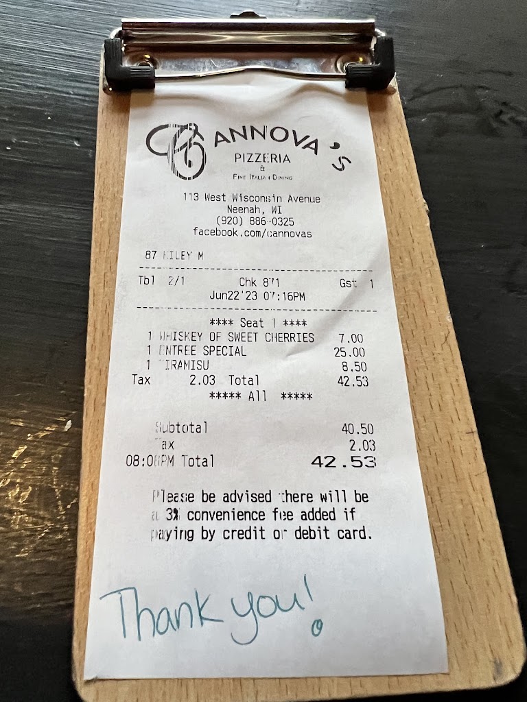We love Cannovas! A hidden gem downtown Neenah. The atmosphere is perfect and the food is so, so good. Make sure to sit on the patio in the summer. Staff has always been top notch, too!
