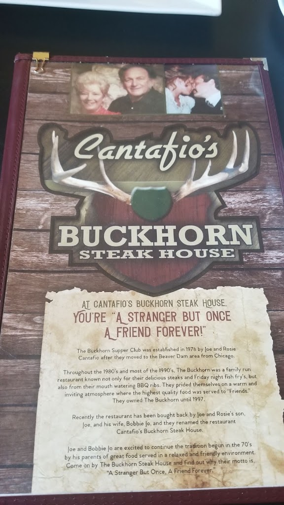 My birthday celebration dinner at Cantafio's was very enjoyable, with even a helium Happy Birthday balloon attached to my chair, and a complimentary dessert of confetti cake. Service was a bit strained at times with limited staffing challenges, consistent with the notice posted on the entry door about that issue, asking for patience. However, there seemed to be good teamwork amongst the staff to help each other out, regardless of table assignments. Our food was quite good generally, if not great. My "Ryan's House Cut" 12oz strip steak had a nice charbroiled flavor, and was fairly juicy despite being cooked to a medium temperature instead of medium-rare as ordered. My wife's liked her "Blackened Tuna Steak", which was cooked to the right temperature (rare). However, it lacked the seasoning and flavor that one expects for any "blackening" recipe (not just pan searing). My son also enjoyed his 4-piece Broasted Chicken, although he was underwhelmed by his choice of Mac & Cheese as a side, which was seemingly prepared straight out of a Kraft box recipe. Lastly, the atmosphere at Cantafio's is that of a rustic, but extremely friendly, supper club, As you may expect, walls are adorned with some taxidermy, consistent with the restaurant's name, Cantafio's Buckhorn Steakhouse. With extensive menu choices at reasonable prices, it's a bit of a hidden gem for those seeking casual "fine" dining.