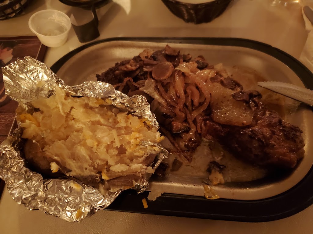 One waitress for the whole dining room. Not fair to her. Half of the meals were very good. The baked potatoes were not. It's sad, we really like this place.