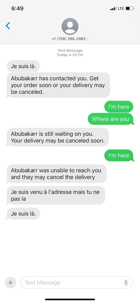 My driver started sending messages a hour later saying that my order will be canceled if I do not take delivery