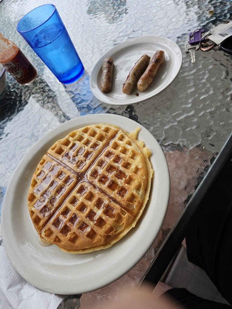 There was a 90 minute wait at another restaurant. There was no wait here. The staff was so nice. The food was so good(waffles with cherries). The price of our meal was very reasonable.
