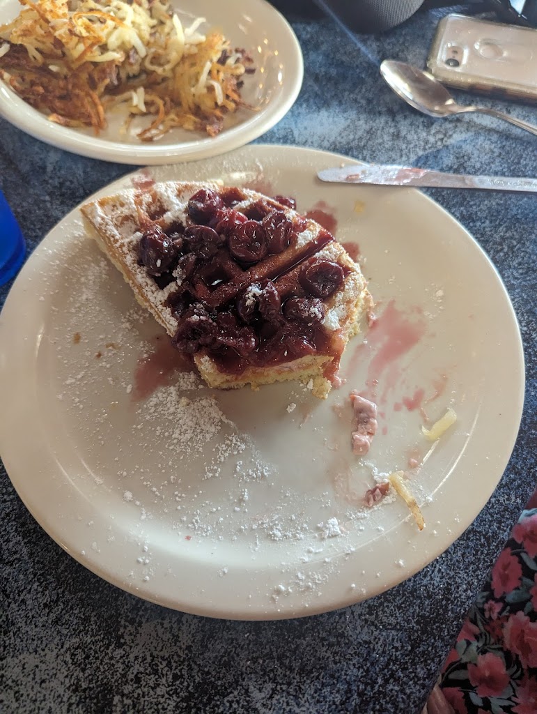 Great place for breakfast! I enjoyed the cherry cream cheese stuffed waffle. It also had cherry pie filling on top! Yummy!