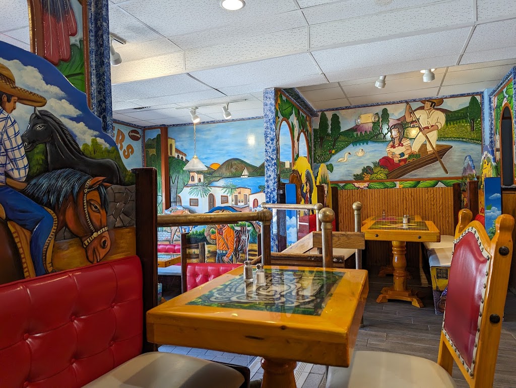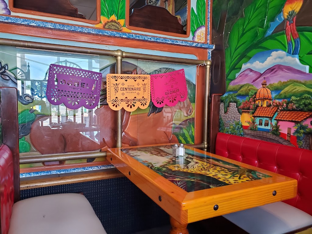 Mexican restaurant with colorful tables & murals offering a classic range of homestyle dishes.