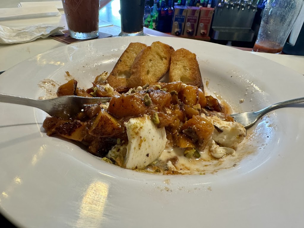 It was pretty bad. Went on a Saturday afternoon with my husband and 2 year old. Took a few minutes before we were even greeted. There were only 5 people sitting at the bar and not a single table filled, so they weren’t busy. In hindsight, we should’ve just left. After searching for a booster seat ourselves, we sat down. We ordered the goat balls and crab rangoon for appetizers. The goat balls were cold in the middle and they had a watery sauce dumped on them, which made no sense. The crab rangoon was okay. But an insanely small portion for the price. You basically get 2 rangoons cut in half. We did eat all our appetizers, since we were hungry. For entrees we orders the Cuban and Ruben sandwiches; 1 with kettle chips and 1 with fries at a $2 up charge. They were BAD. The meat in both was soggy and stringy; essentially inedible. The fries were nothing special for $2 extra and they absolutely needed ketchup. However, the ketchup at our table was sticky to touch and crusty on the top, so we didn’t trust it. The Cuban’s meat was much the same and had so much mustard it was disgusting. Our server was young and sweet enough, but never checked in on us and had to flag her down for the check. All of the food we ordered was suggested to us by our server. We paid way too much. Food bad, service meh. We won’t be back.