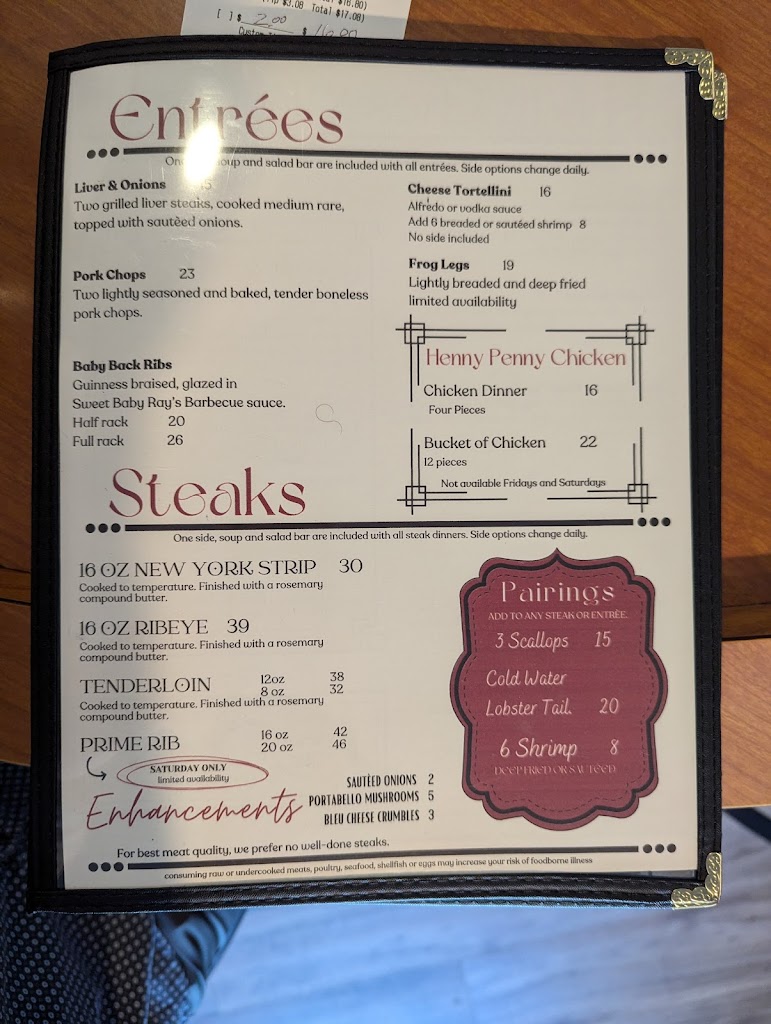 What a hidden gem! Staff is super friendly and had a close knit feeling. Salad bar, potato bar very good. Can’t say enough about our waitress Aliyah E. Thanks for a fun supper club experience