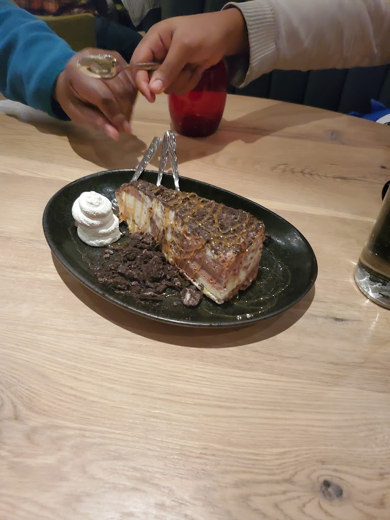 The food and service were absolutely phenomenal! I had the bison pot roast. It was so good and did not last long on my plate! I was practically licking the plate clean! My date had the Mussels which looked fabulous. I had to try them, and man were they good! To top it off we got the chocolate mousse as desert. Another great choice! It came out very artistic looking and was shaped like a little pyramid and was so dang tasty!