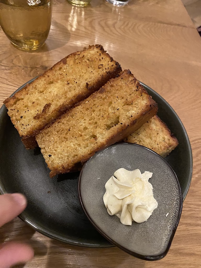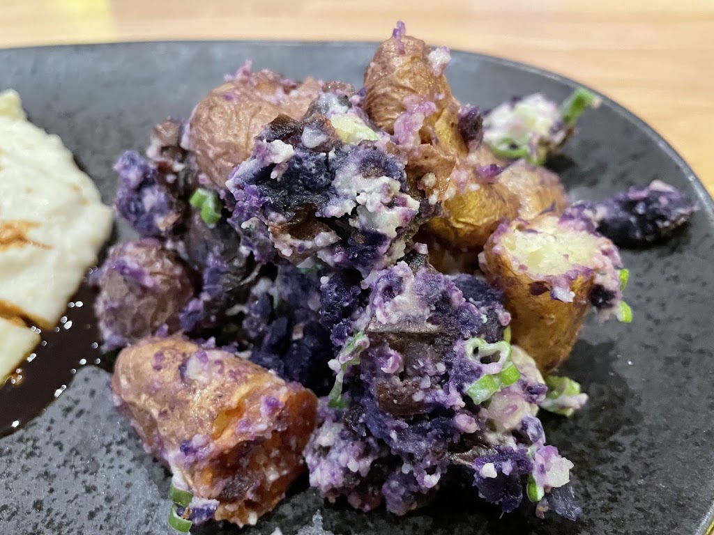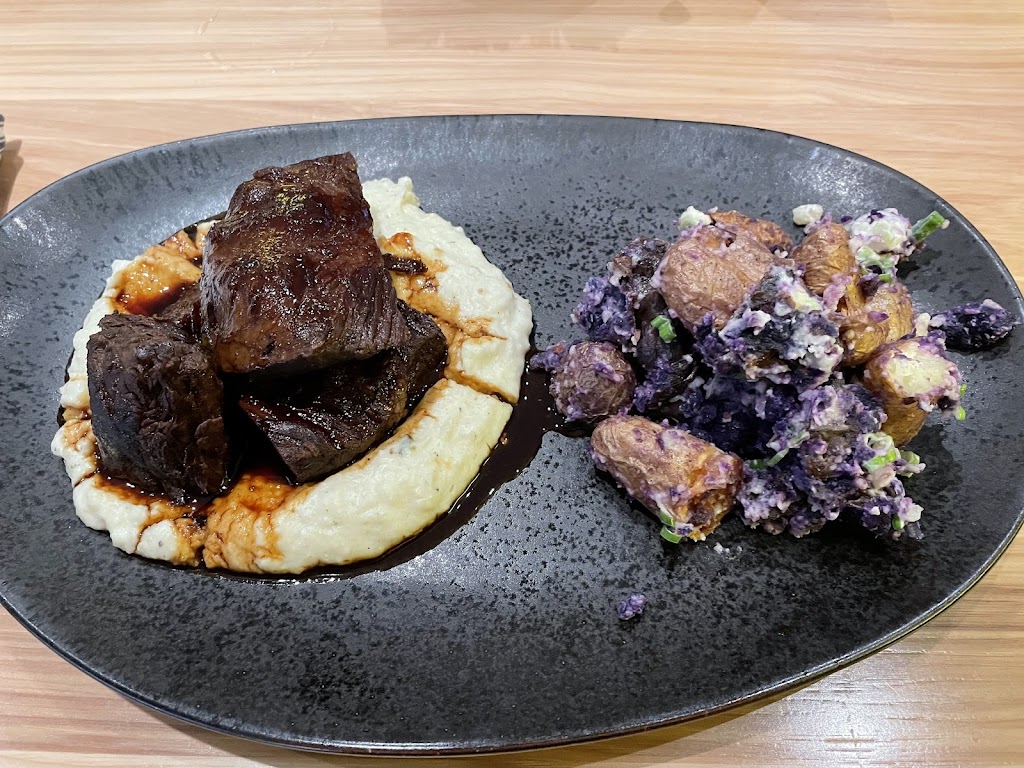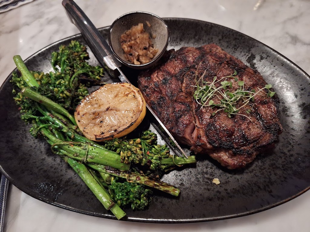 The Duroc Tomahawk Pork Chop ($42) was delicious, well-seasoned, and perfectly cooked—but small for a tomahawk cut. The side of “smashed” fingerling potatoes was underwhelming: not smashed, served cold, and far too large a portion. It felt like filler to pad the price.