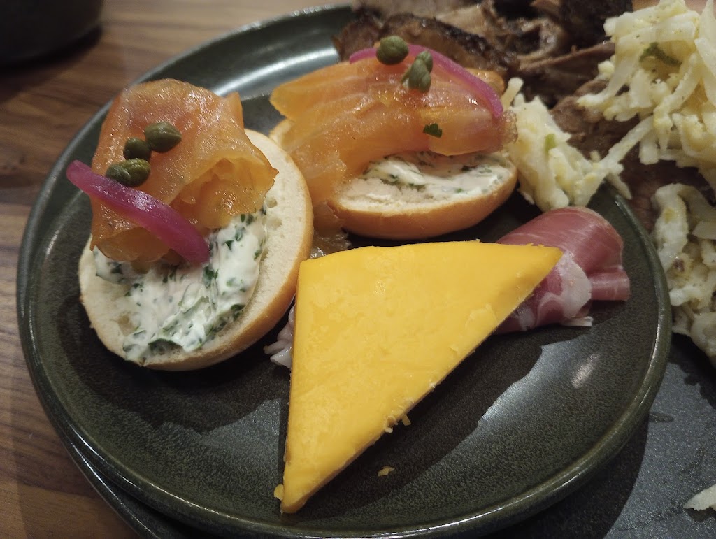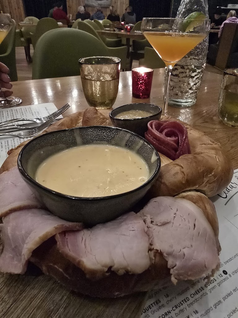 Food was horrible. The cheese board was a pretzel with Costco bought meats and cheese , are other apps were and looked cheap. And got sick after eating there won't be there again. Hotel is nice . Staff was nice at restaraunt . Food just is over priced and horrible . But if u want good drinks and friendly staff your good .