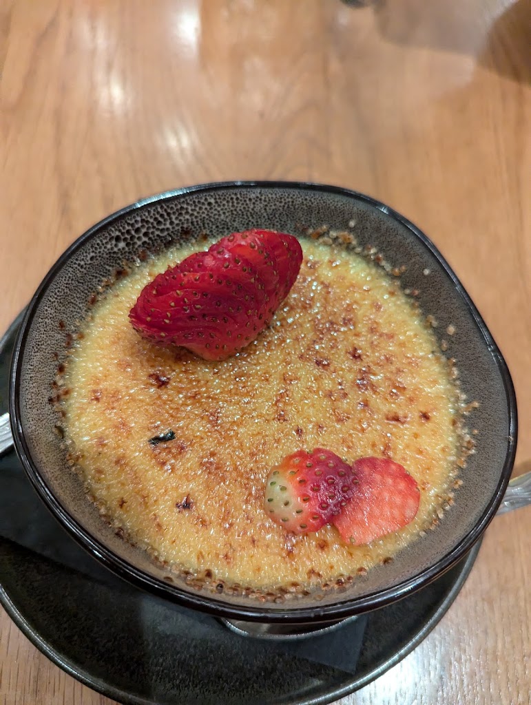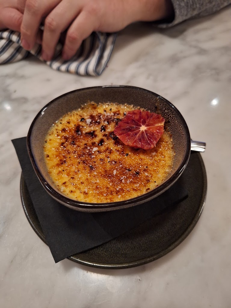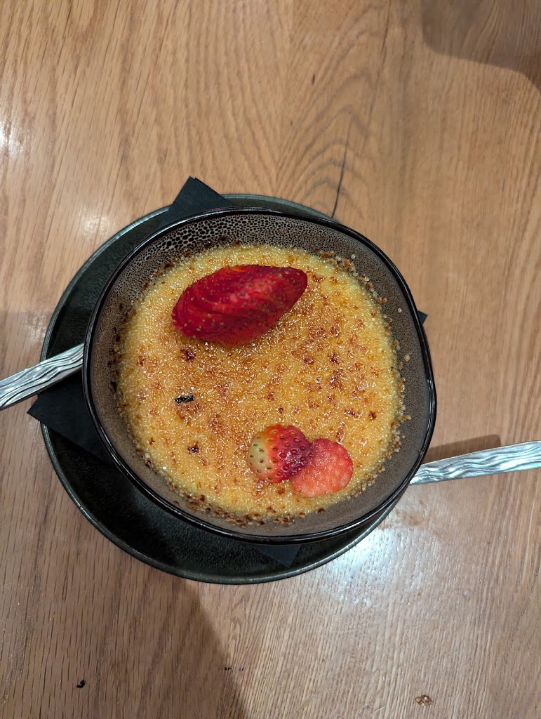 Our server Hayden was attentive but not hovering. Everyone was very pleased with their meal (steak, lamb and prawns). Dessert was disappointing. Crème Brûlée was cold.