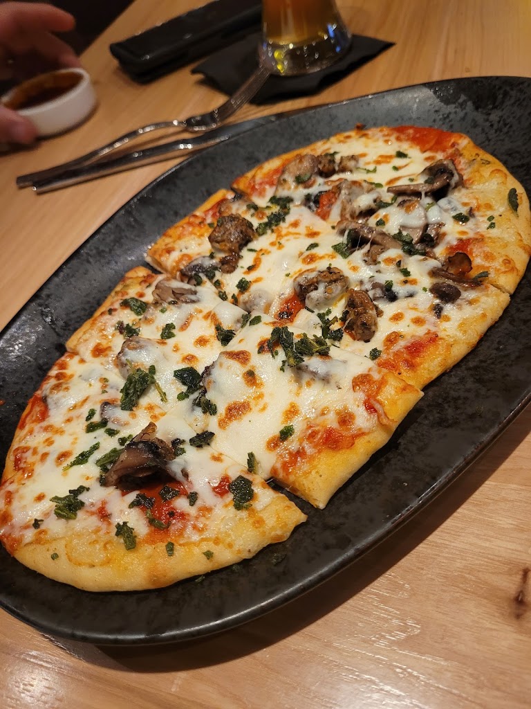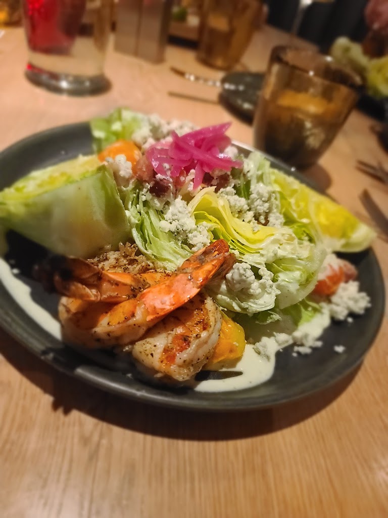 I go here for the dry rub duck wings. Add a wedge salad and you're all set. The pizza is pretty good and the shrimp dinner is lovely. I really like this place. Plus, the service is always super cool.