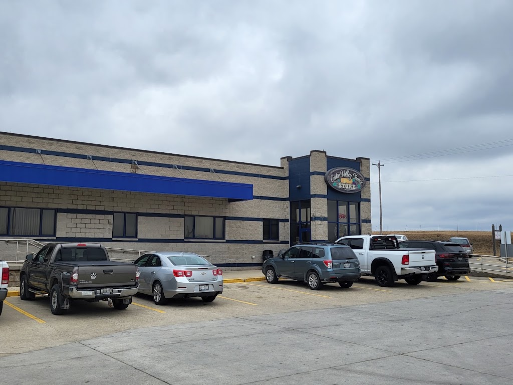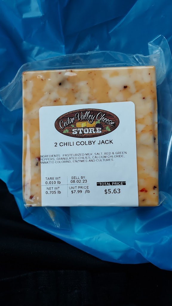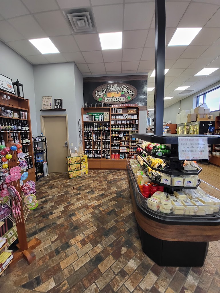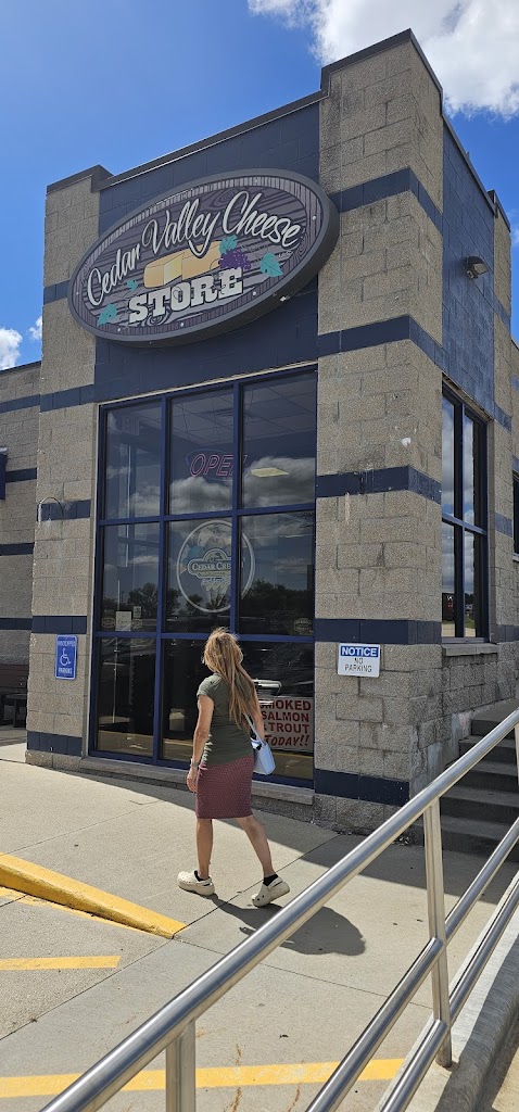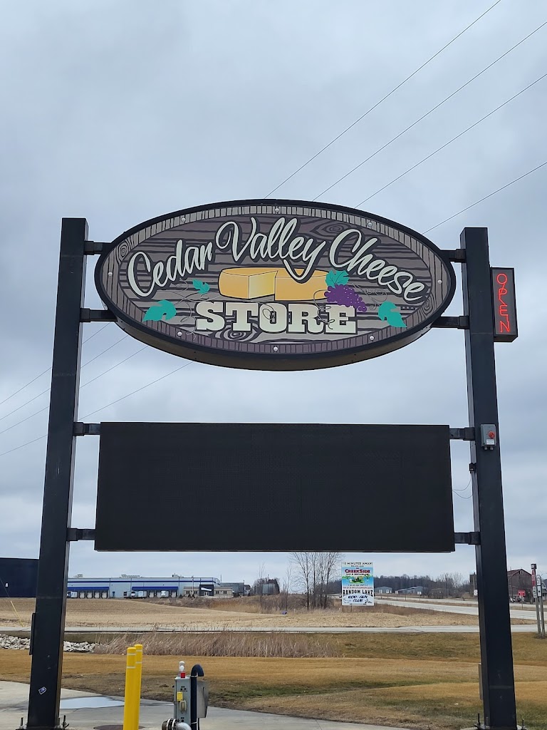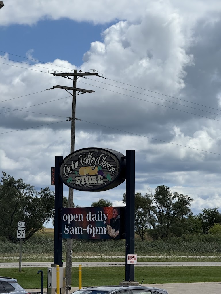 Cedar valley cheese serves good sandwiches, has ice cream and a wide variety of cheese and sausage products choose from. It's a great place to visit, and spend a hour.
