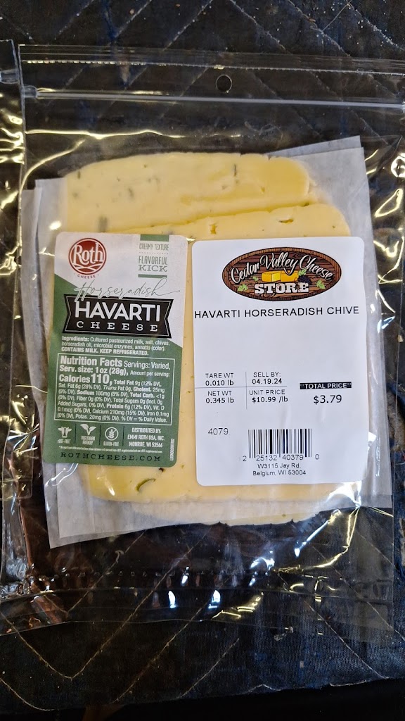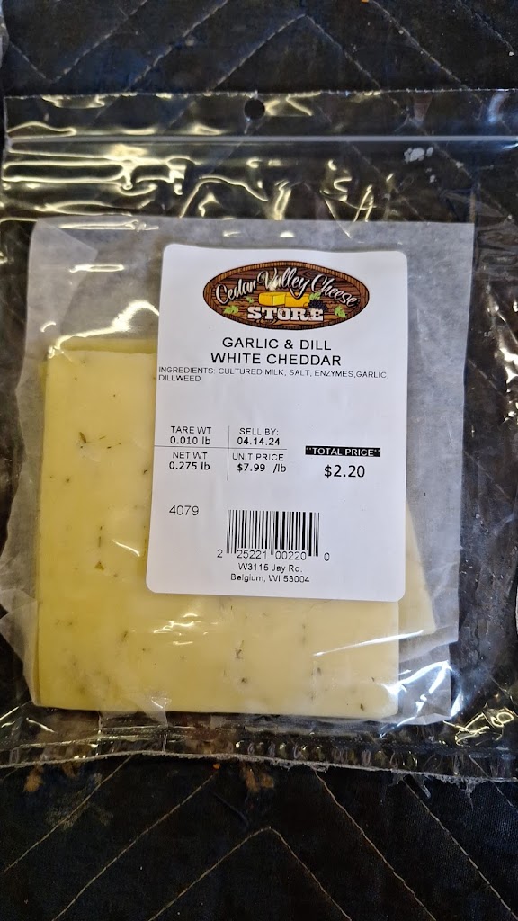 Cedar Valley Cheese Store-located just outside Random Lake, Wisconsin, on Highway 57-carries 300+ varieties of Wisconsin cheese. It also offers other Wisconsin-made products such as: ice cream, milk, jams and jellies, sausage, wine and even Cheesehead apparel. The store specializes in Mozzarella, Provolone and string cheese, which are made at the family-owned Cedar Valley Cheese Factory next door.